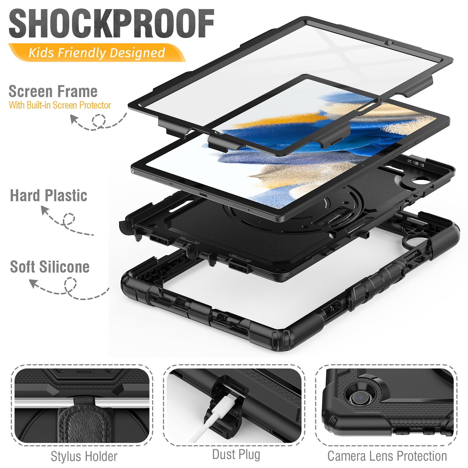 Shockproof & Screen Protector : This case for Samsung Galaxy Tab a8 cases is made of anti shock material, soft silicone, hard PC shell and built-in screen protector, with its sturdy structure to protector your tablet from shock, drop, scratch or accidental damages in daily use.
