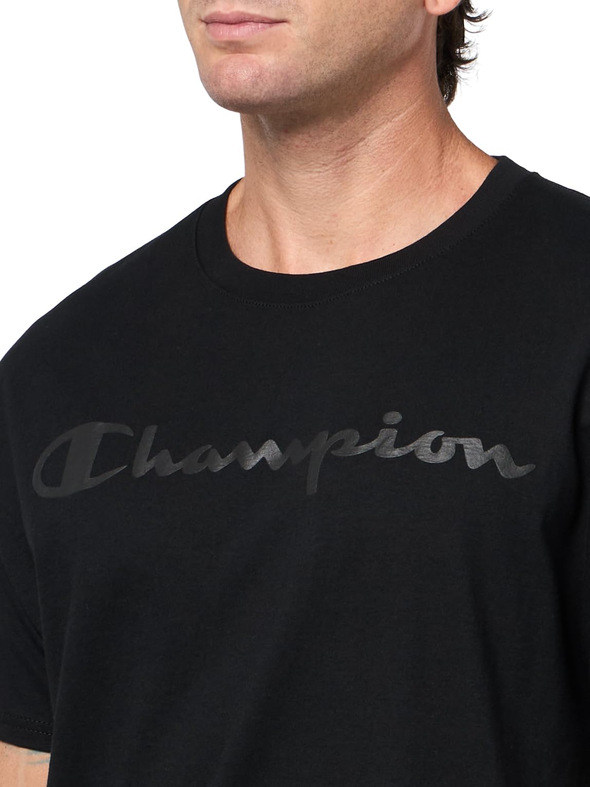 Description LAID-BACK, TO A TEE. Update your t-shirt rotation with this ultra-comfortable Big & Tall T-shirt for men. Crafted from a soft cotton or cotton blend, this casual-cool style delivers extra softness you'll appreciate. It features a crew neckline for classic styling, easy comfort, and can't-beat quality. You'll love the classic script spanning the chest and the iconic C logo patch on the sleeve - designed to represent your true brand pride. This crewneck comes in ton of colors, so pair it with your best Champion joggers or shorts for a simply iconic look.