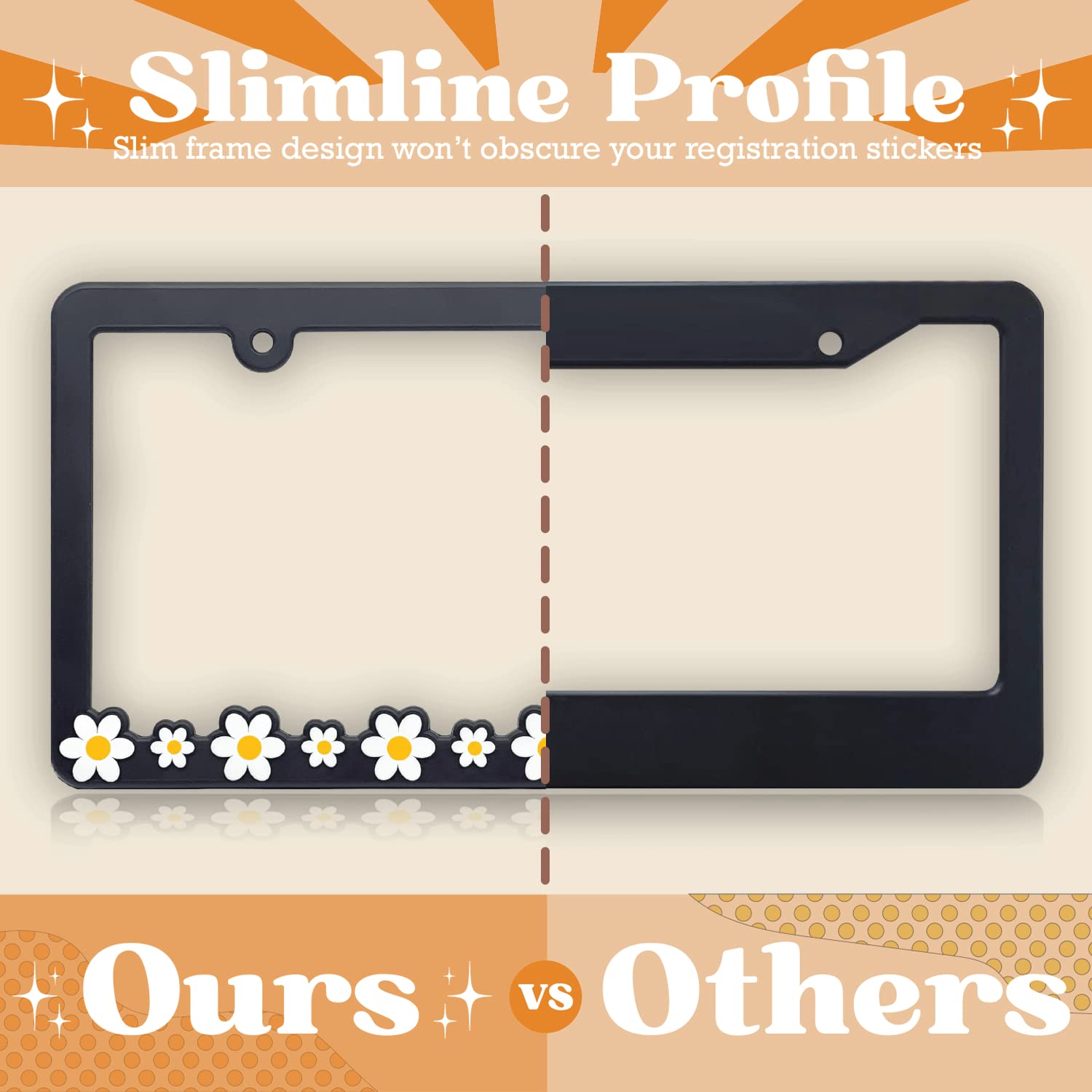 ✿EASY TO INSTALL✿ Taylor made for swift and hassle-free installation, our cute Daisy tag holder frame uses your vehicle’s existing screws and hardware to attach it to the front or rear of your car. No special tools or skills are required, making it easy to personalize your vehicle with a touch of floral elegance