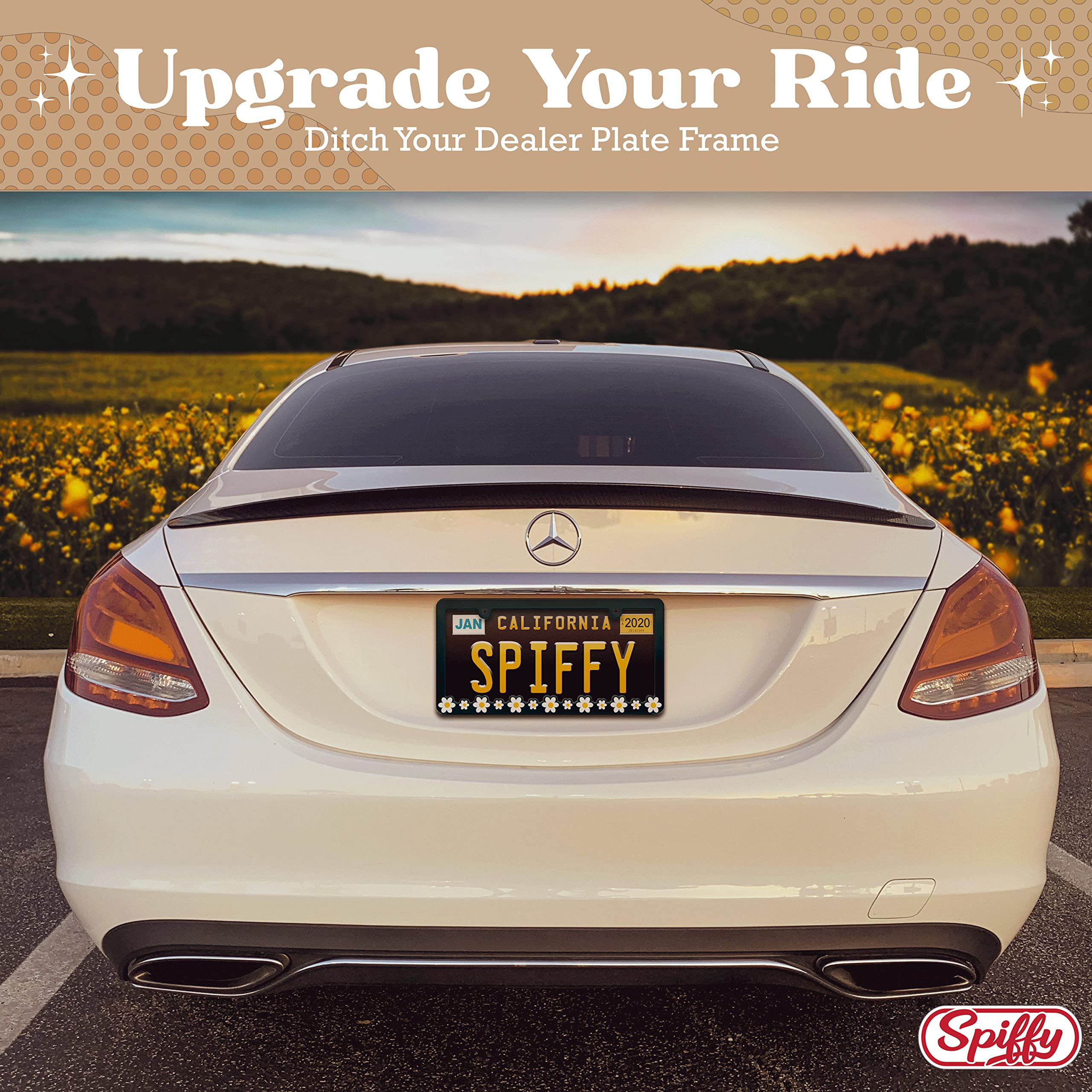 ✿FLORAL DESIGN✿ Transform your vehicle with Spiffy’s Daisy License Plate Frame Holder. Perfect for adding a touch of girly car décor, this charming accessory features a vibrant retro daisy design. Ideal for those who love boho floral accents and want their car to reflect their personality, this frame brings a fresh and playful touch to your vehicle