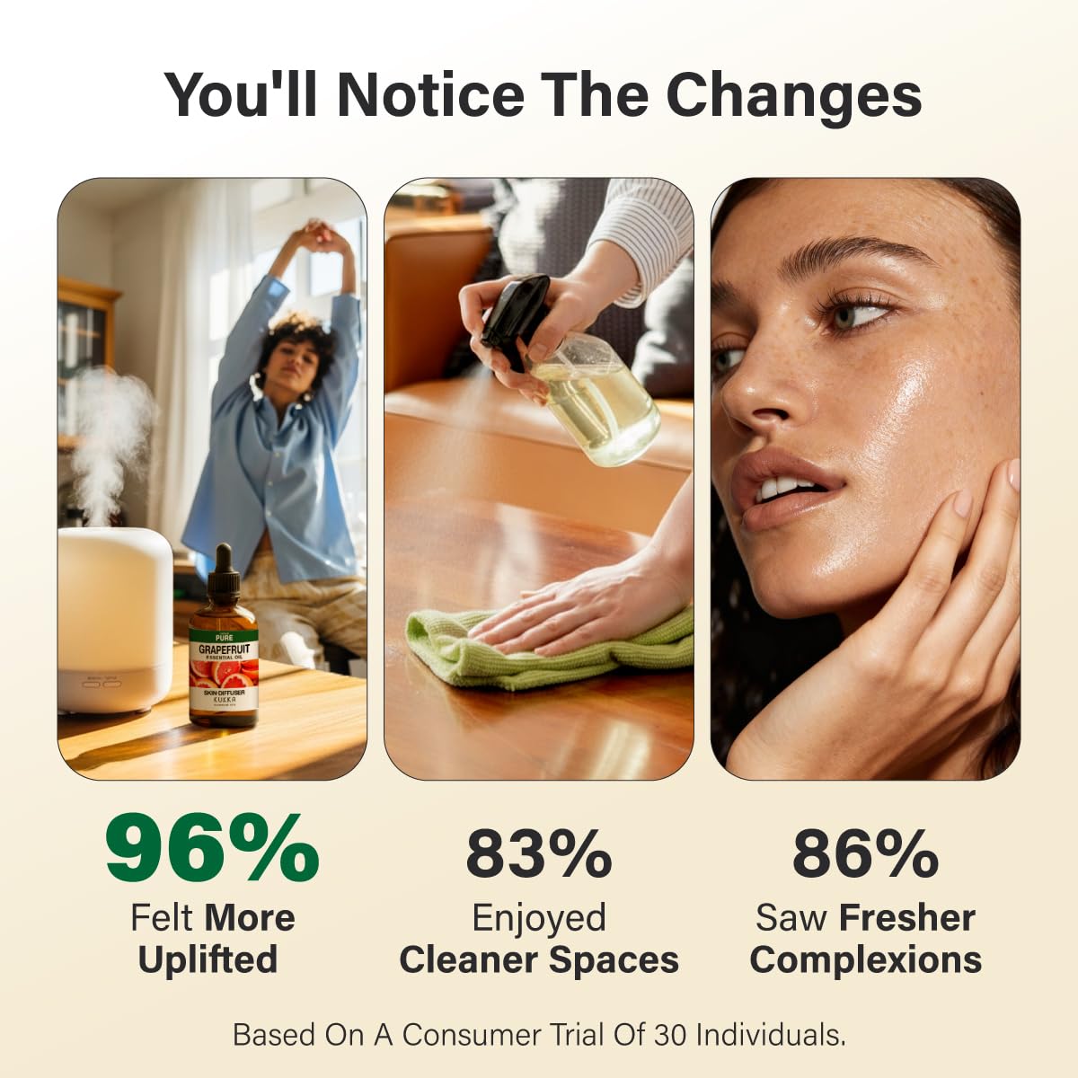 Blends Well with Other Oils. Grapefruit oil essential is a versatile scent that goes well with any scent. Create a refreshing DIY surface spray or mix a few drops into your homemade cleaning recipes for an uplifting, citrusy sparkle.