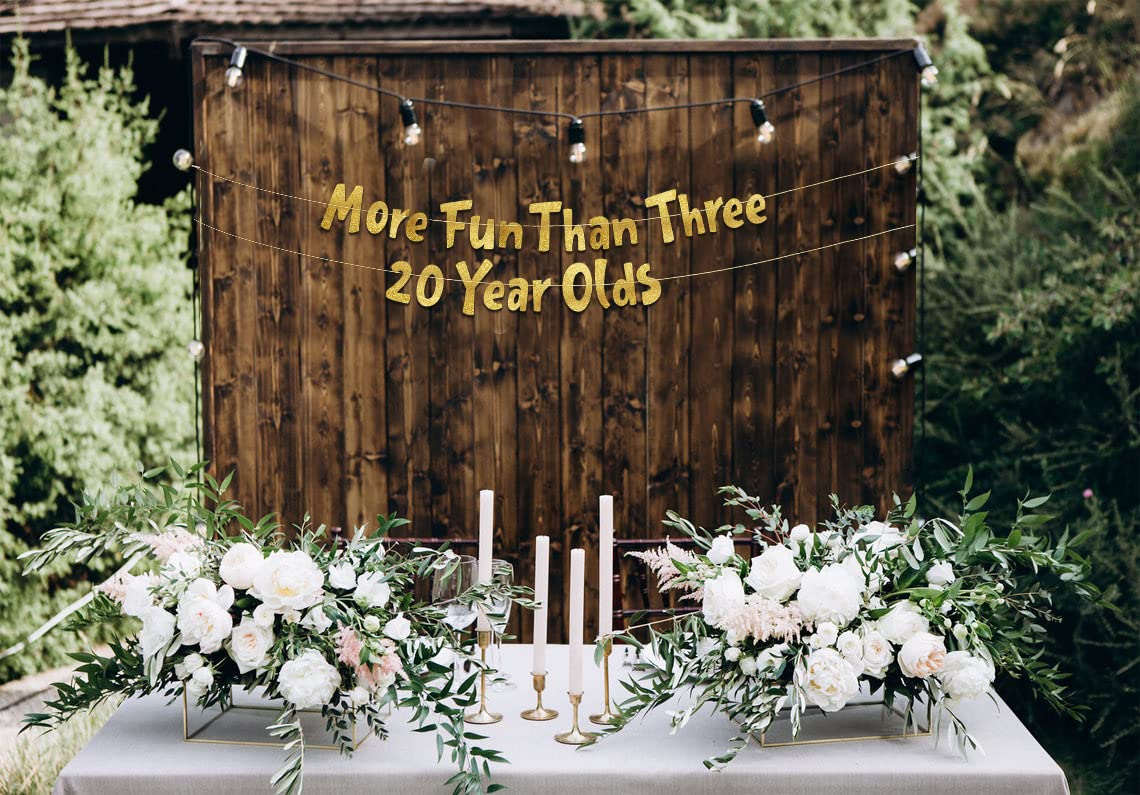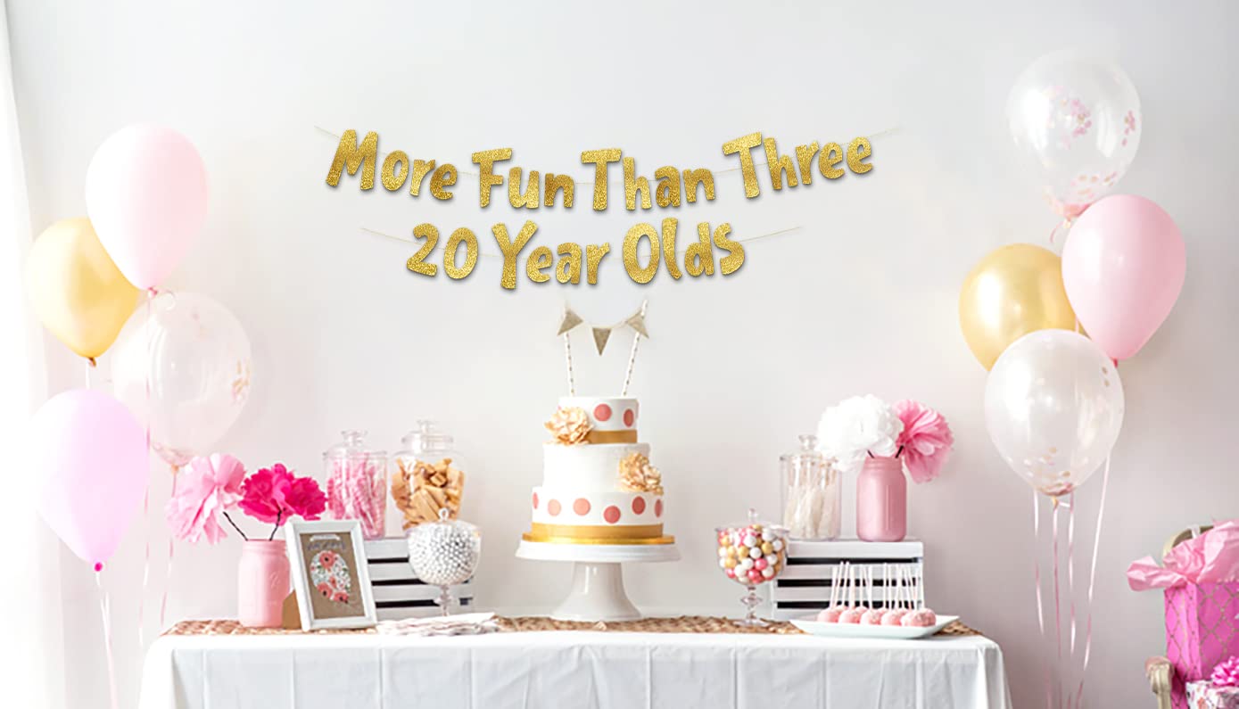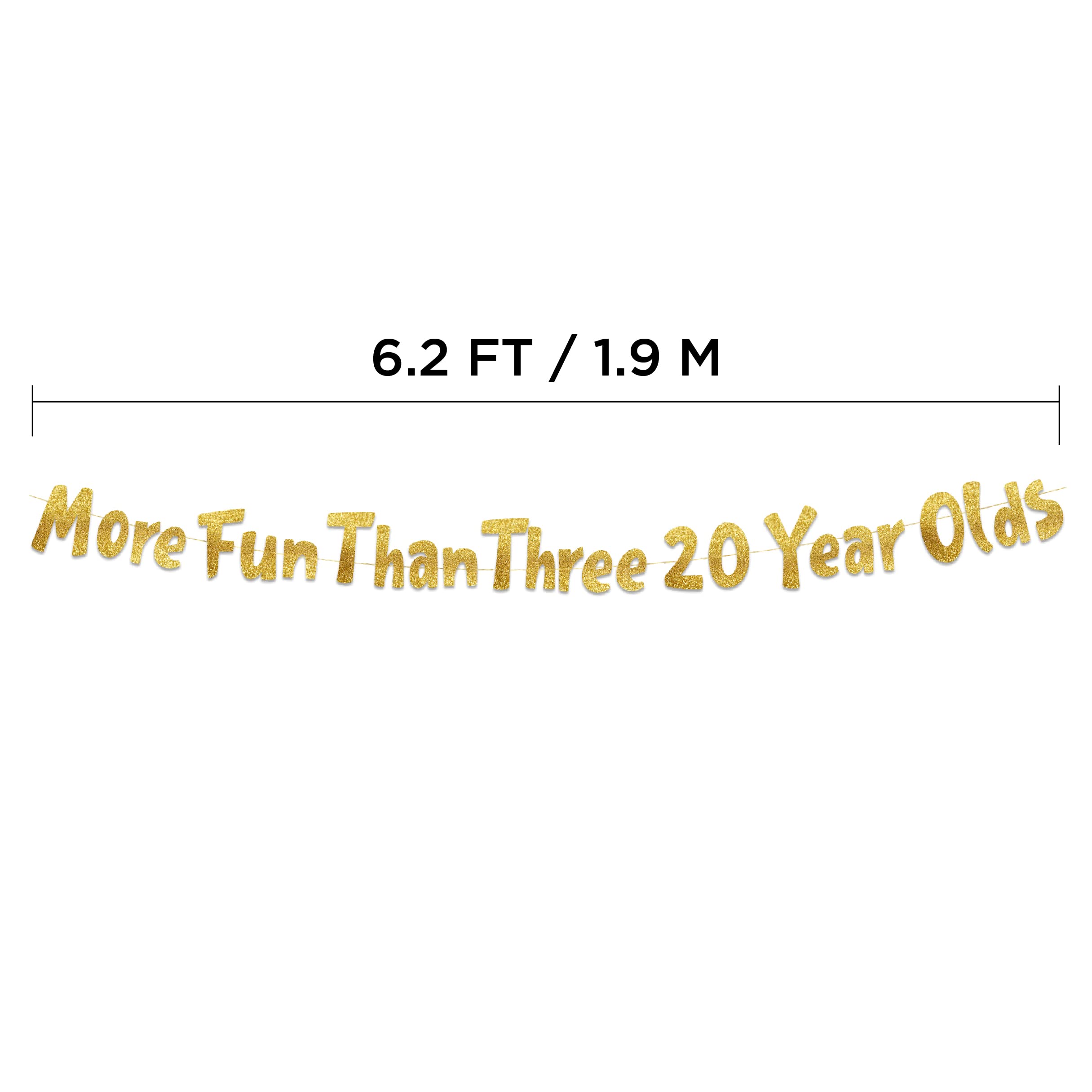 Happy 60th! What better way to celebrate than with our premium quality “More Fun Than Three 20 Year Olds” gold glitter banner. This is the perfect decoration to add a touch of classy decor and welcome your guests to the occasion.