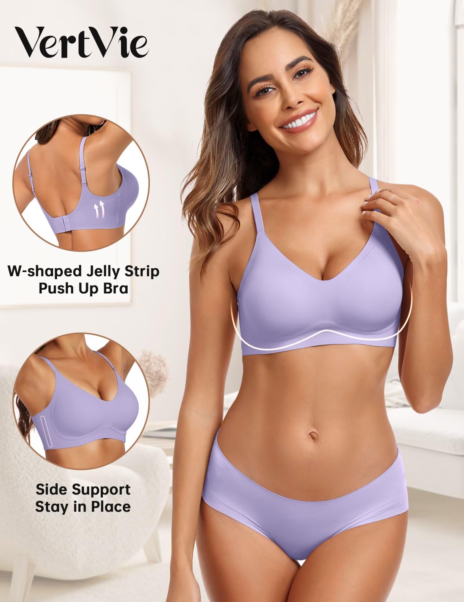 【Seamless Sports Bra】 The bras for women no underwire provide full coverage, support and lift. The sexy V-neck design enhances your bust line. The bra pads are removable, so you can take them out as needed. This everyday T-shirt bra is lightweight, invisible, and non-see-through, hugging your chest perfectly to provide a smooth look under clothing