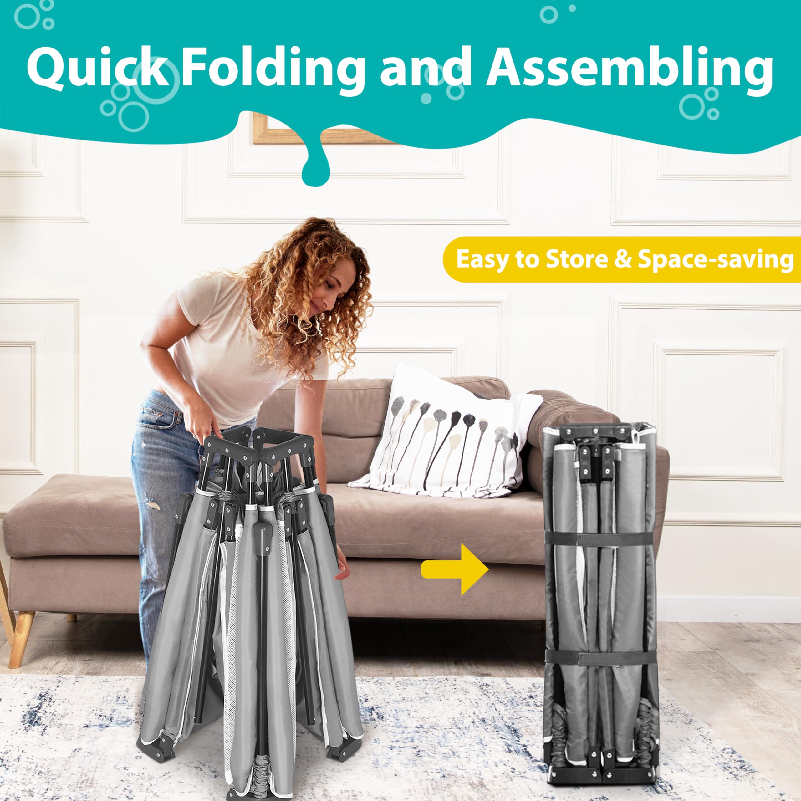 Easy to Assemble: Unlike other playpens, our baby playpen foldable has been upgraded for effortless assembly and disassembly, requiring no tools at all. You can complete the setup in just 1 to 3 minutes by yourself