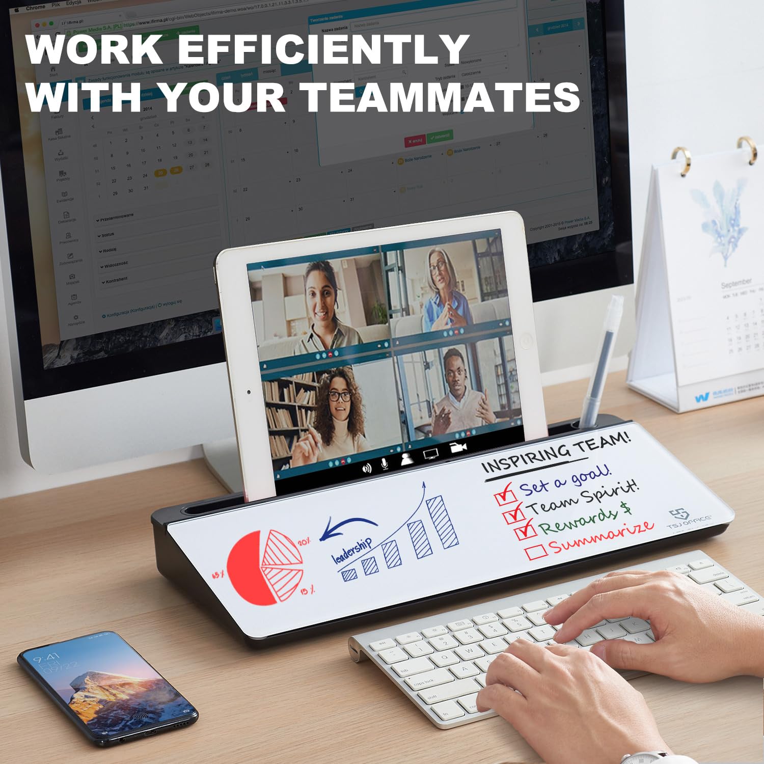 SMOOTH WRITING & EASY TO WIPE: TSJ OFFICE mini desktop computer pad comes with a smooth and durable temple glass dry erase writing surface. This white board allows you to write and wipes clean with ease over and over. Our easel whiteboard always stays white and easy to read.