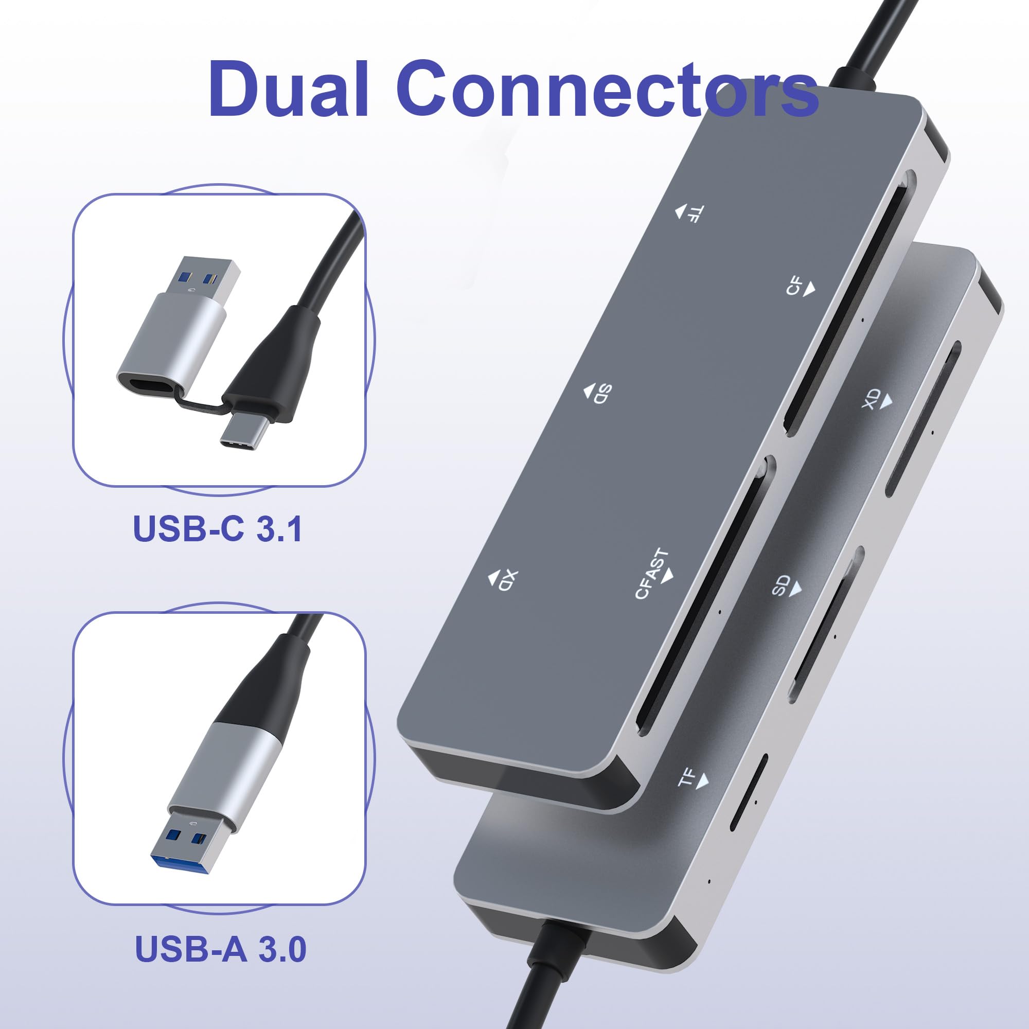 【What We Offer】1 x USB A USB C CFast/CF/SD/TF/XD 5-in-1 Card Reader, 1 x User Manual, 2-year and friendly customer service. Please feel free to contact us at any time.