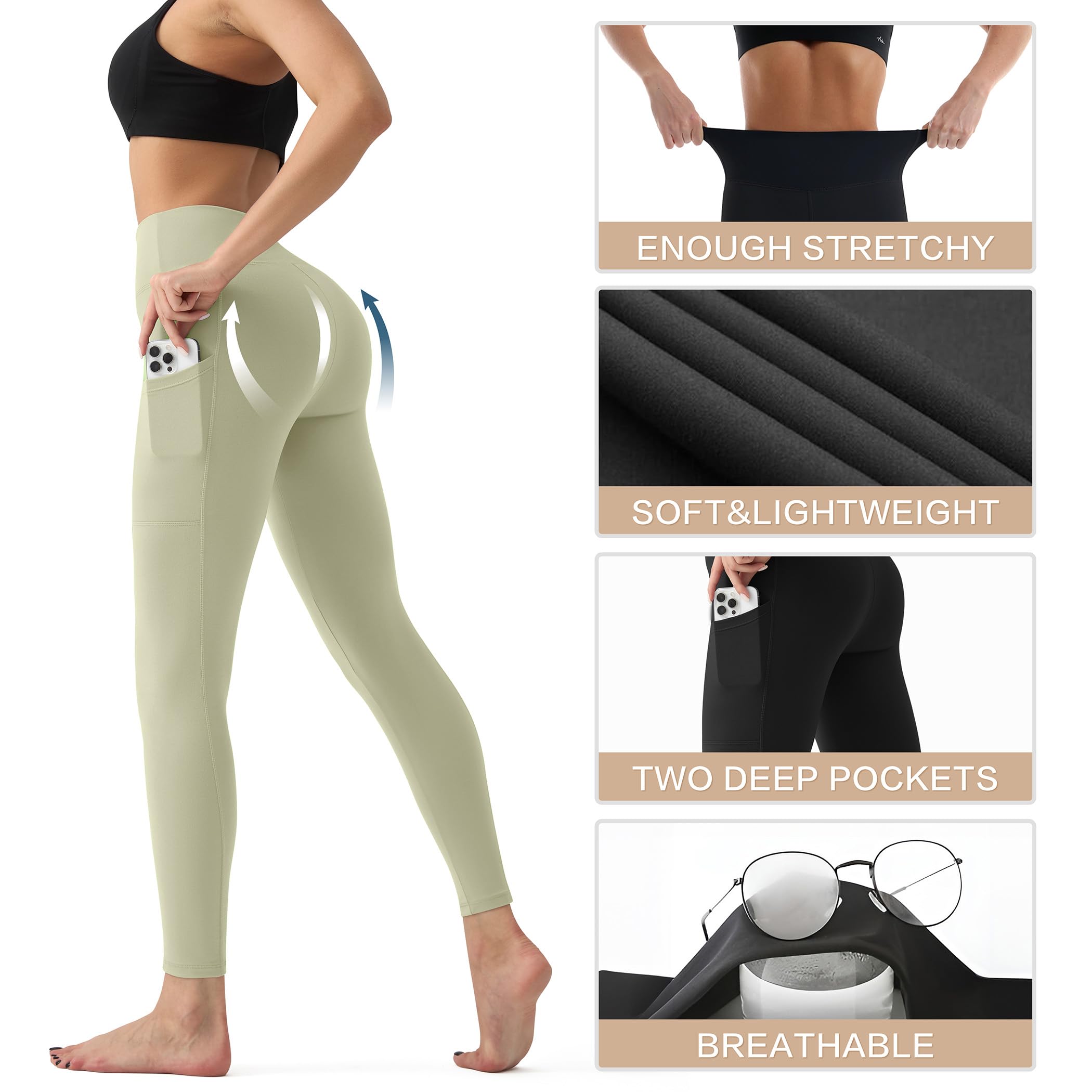 💗【HIGH WAIST TUMMY CONTROL】Our high waisted leggings offer lightweight comfort. The wide waistband with tummy control ensures a smooth and secure fit, accentuating your figure perfectly. They strike the perfect balance between fashion and functionality. With fewer seams, these leggings provide a cleaner and sleeker look, contouring your curves and body structure beautifully, without the concern of irritation or bruising on the inner thighs.