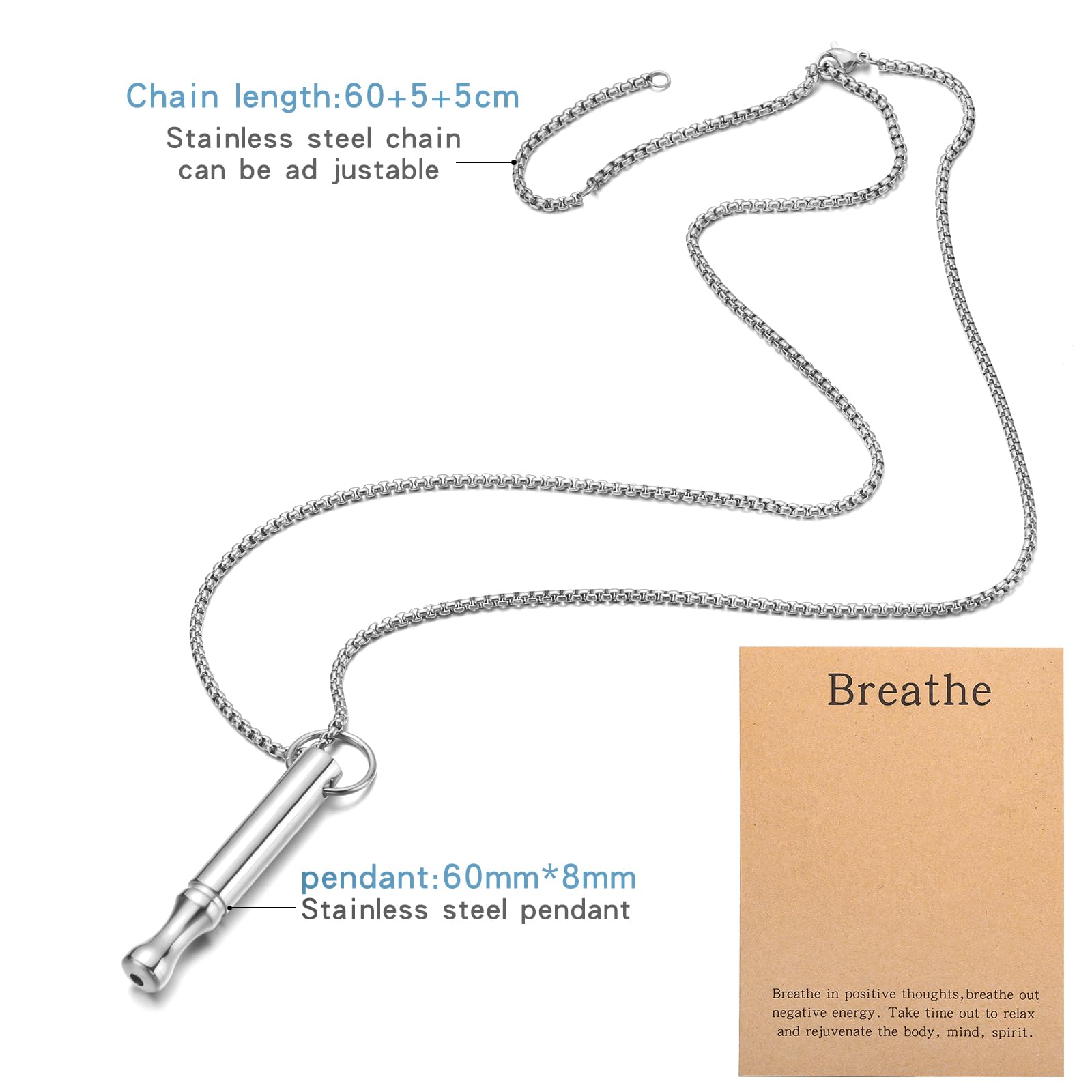 MINDFULNESS BREATHING NECKLACE: Take a slow inhale through your nose for 4 seconds, hold for 7 seconds, then exhale slowly using the breathing tool for 8 to 10 seconds. Repeat for several cycles. This breathing technique will naturally calm your body and mind.