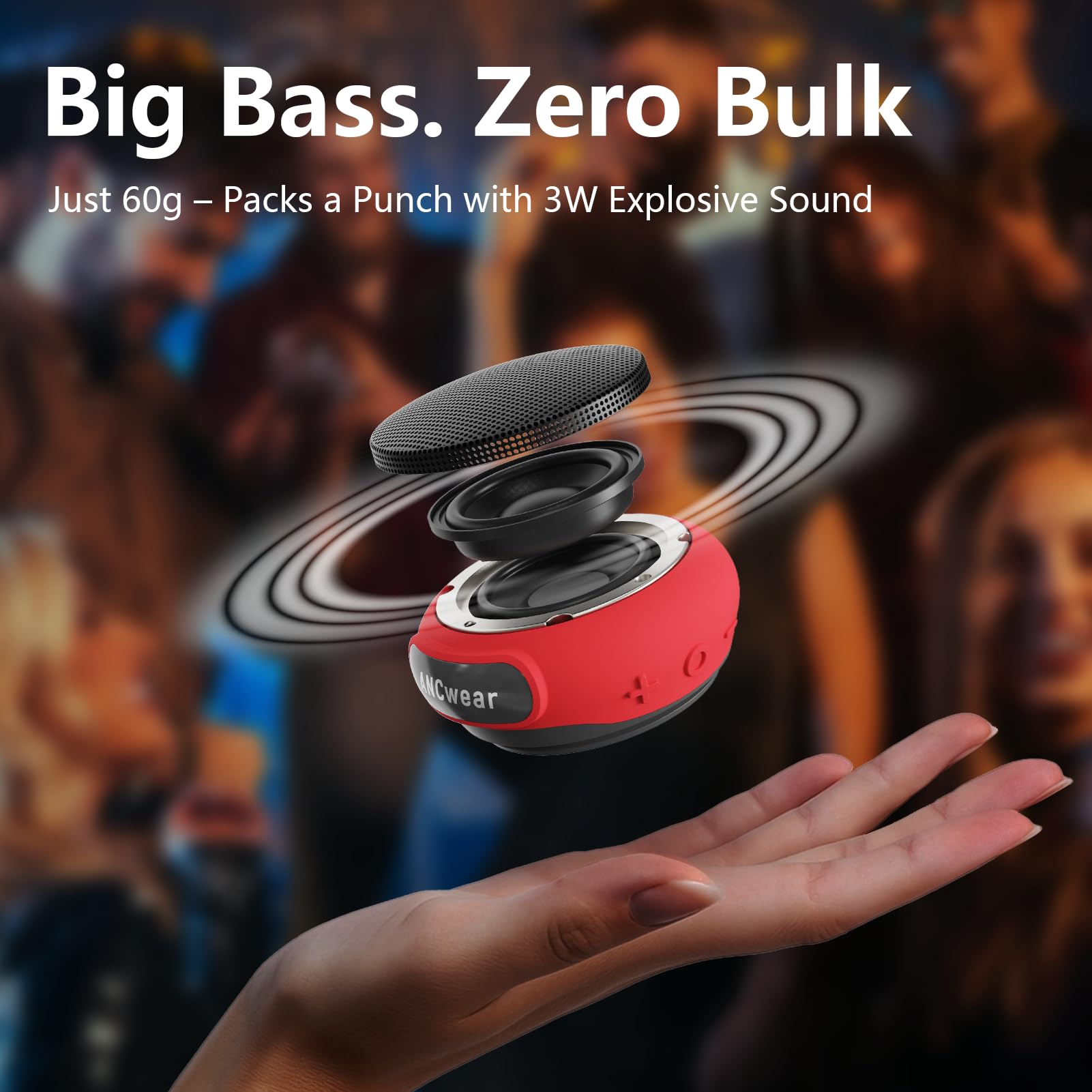 BIG SOUND, SMALL SIZE:Weighing just 60g, this little speaker bluetooth surprises with 3W explosive sound. A quick 1.5-hour charge gives you 9.5 hours (1/3 max volume) of playback and 18 hours standby time. Take your music anywhere — in your pocket or on your wrist.