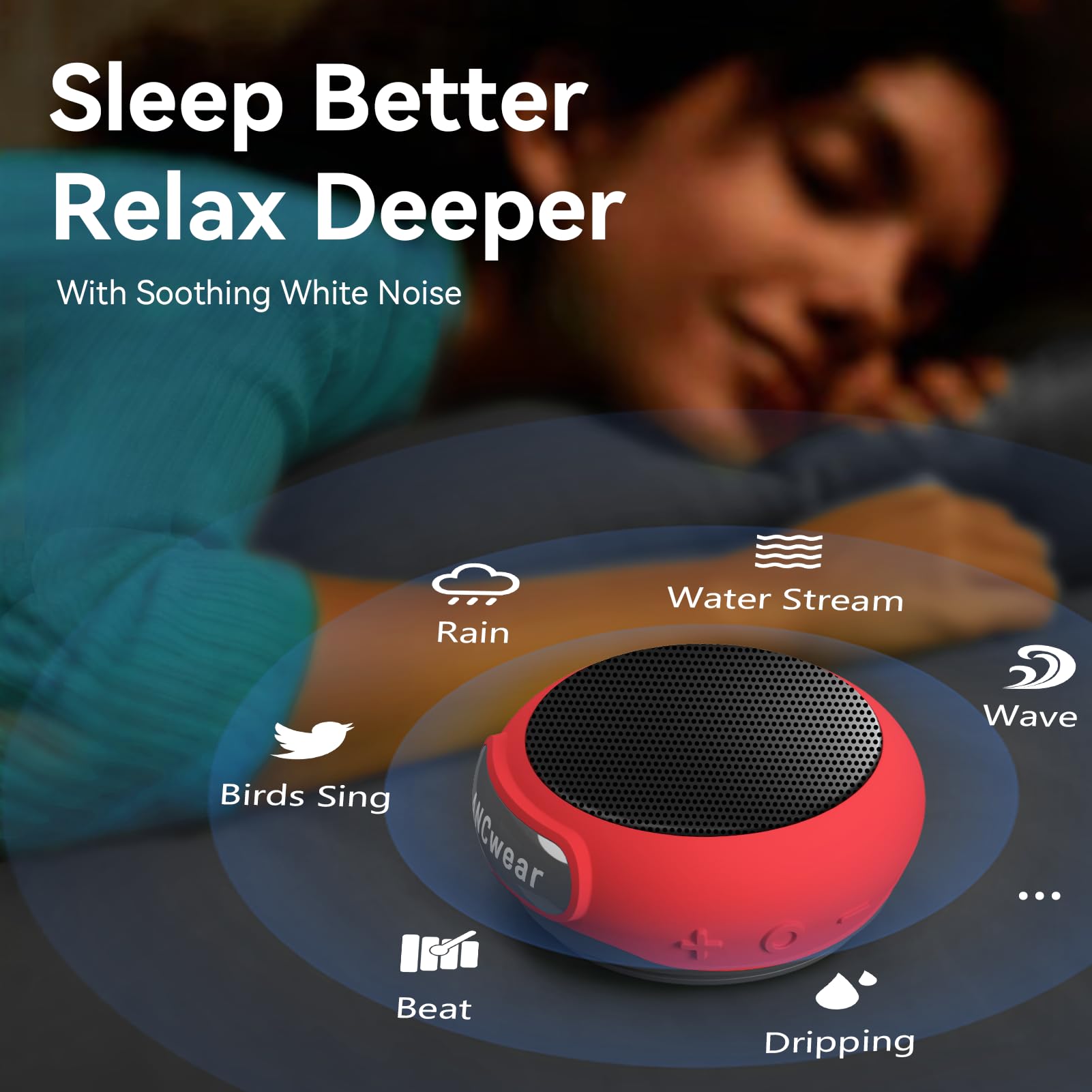 WHITE NOISE FOR RELAXATION: From soothing rain and ocean waves to forest birds and streams, enjoy 17 built-in white noise sounds to help you sleep, focus, or unwind — your natural sound companion anytime, anywhere.