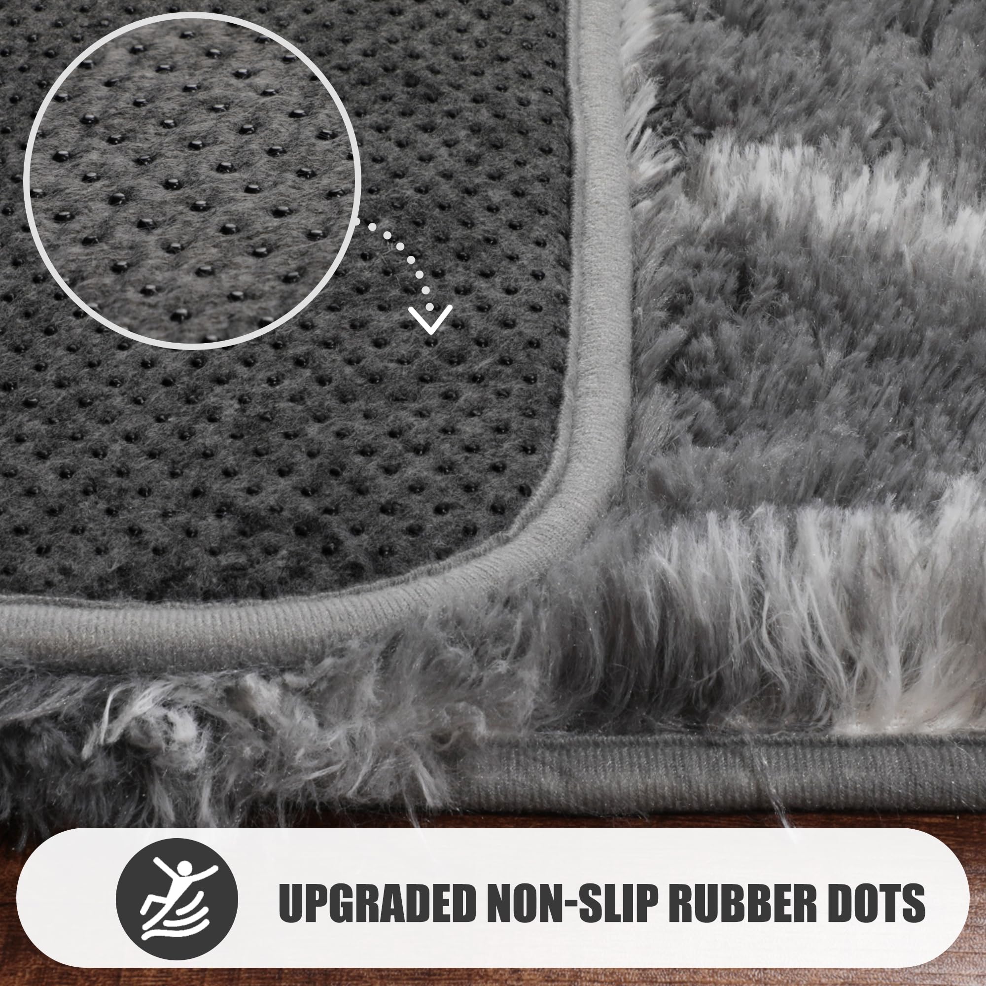 [ Upgraded Anti-slip Backing ]: Compared with the general rugs, its upgraded bottom has more and larger durable rubber dots that provides superior grip on hardwood, tile, or laminate floors. Using sofa to hold down part of the rug or a rug pad gripper can can firmly fix the rug. Enjoy peace of mind knowing your rug stays securely in place, ensuring safety for your family and pets.