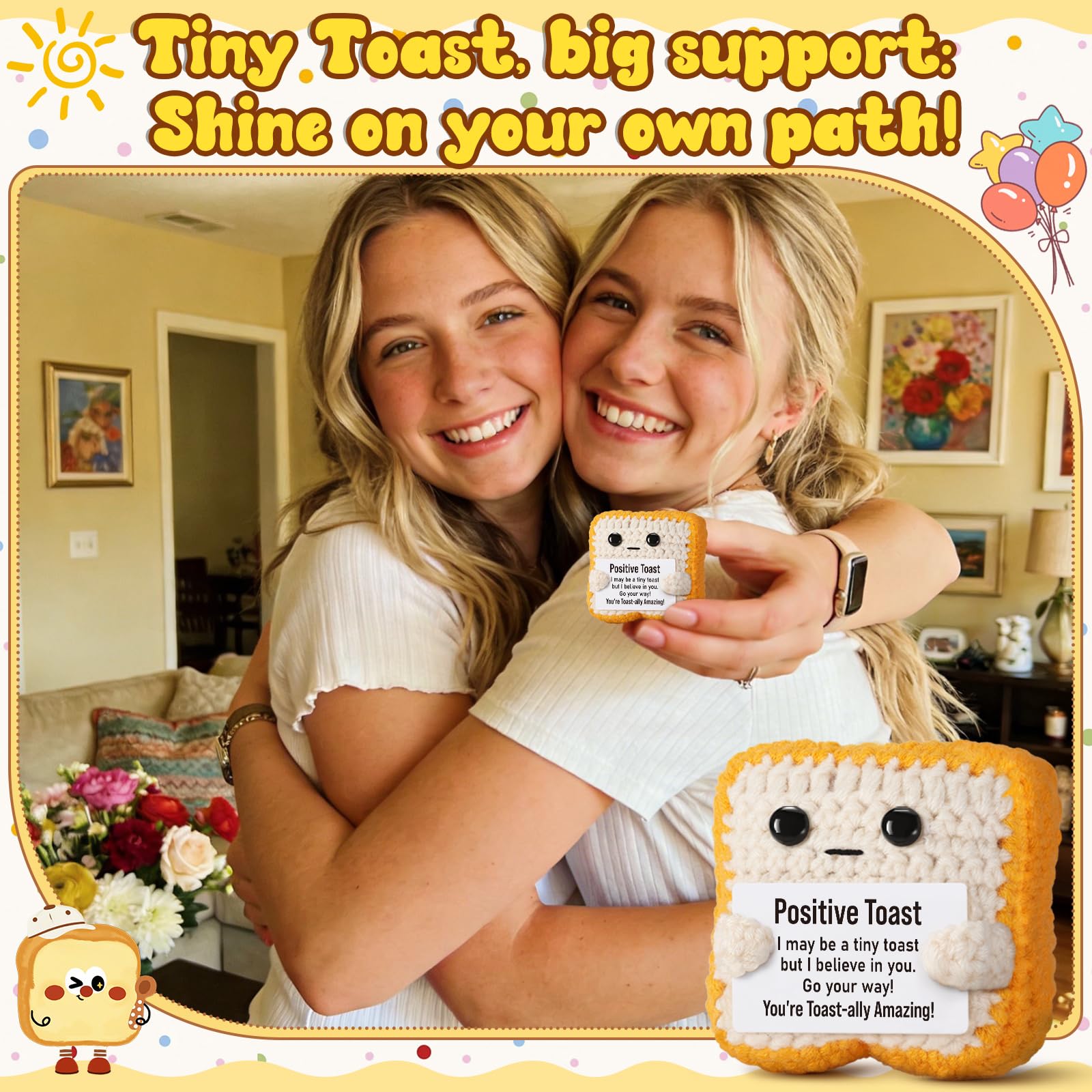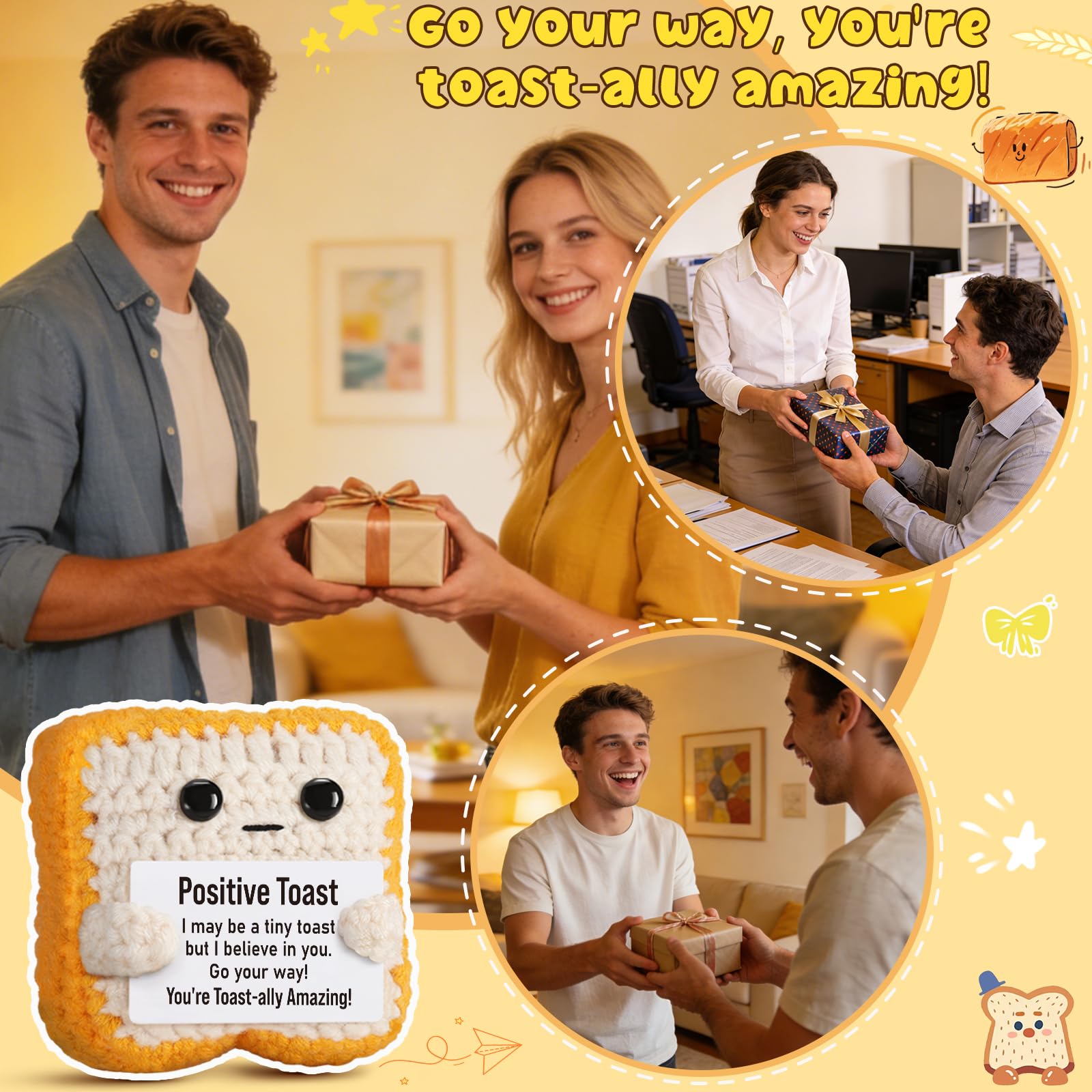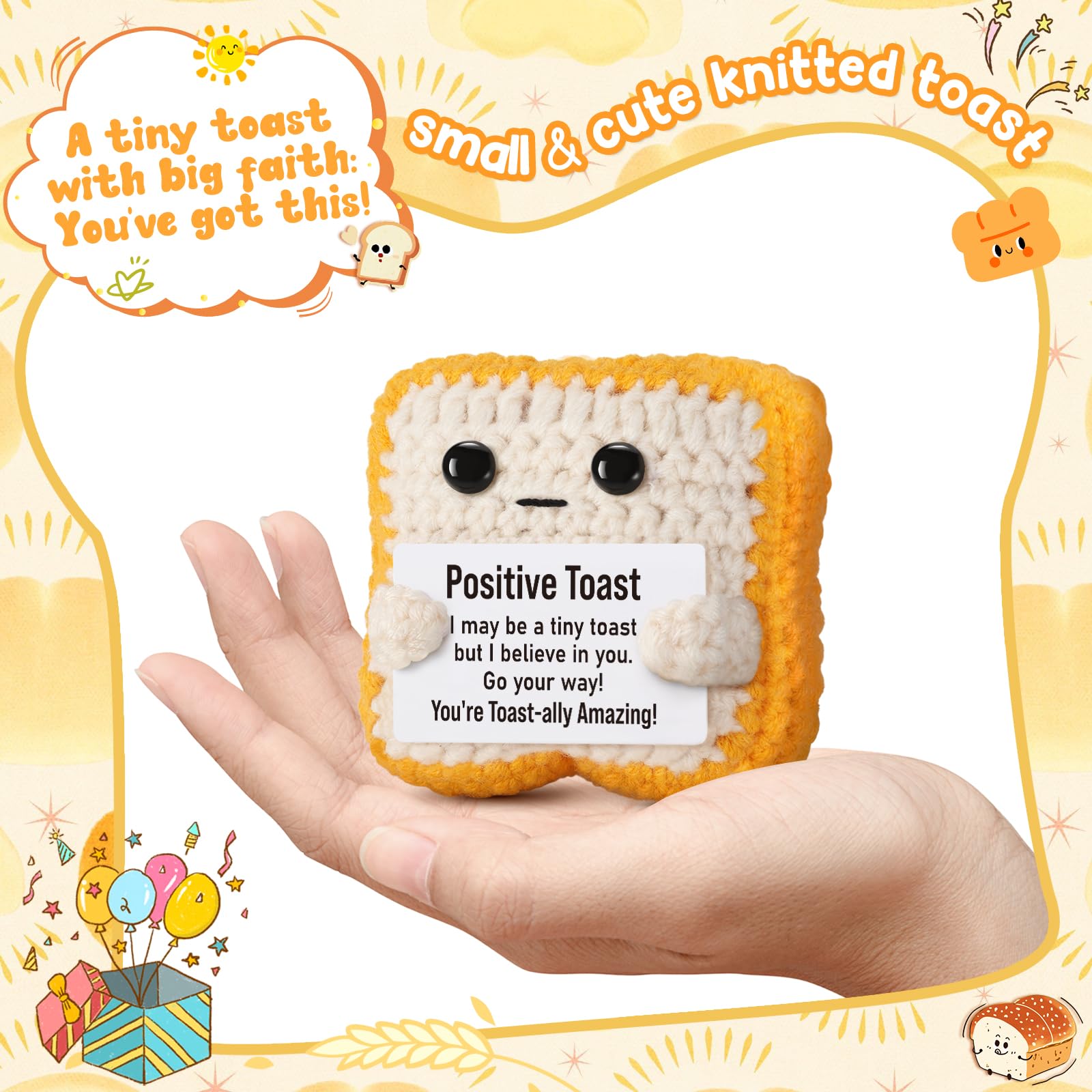 You're Totally Amazing! This handmade crochet toast is more than just a plush—it’s a symbol of encouragement, positivity, and emotional support. Thoughtfully crafted from soft yarn, this mini toast is a heartwarming reminder to keep pushing forward, no matter what challenges come your way. A perfect motivational gift for friends, teachers, coworkers, College, University Grads, PHD, Nurse or anyone who could use a little extra positivity. Whether placed on a desk, nightstand, or bookshelf, this tiny toast serves as a daily boost of confidence and warmth. You are capable, strong, and absolutely incredible!