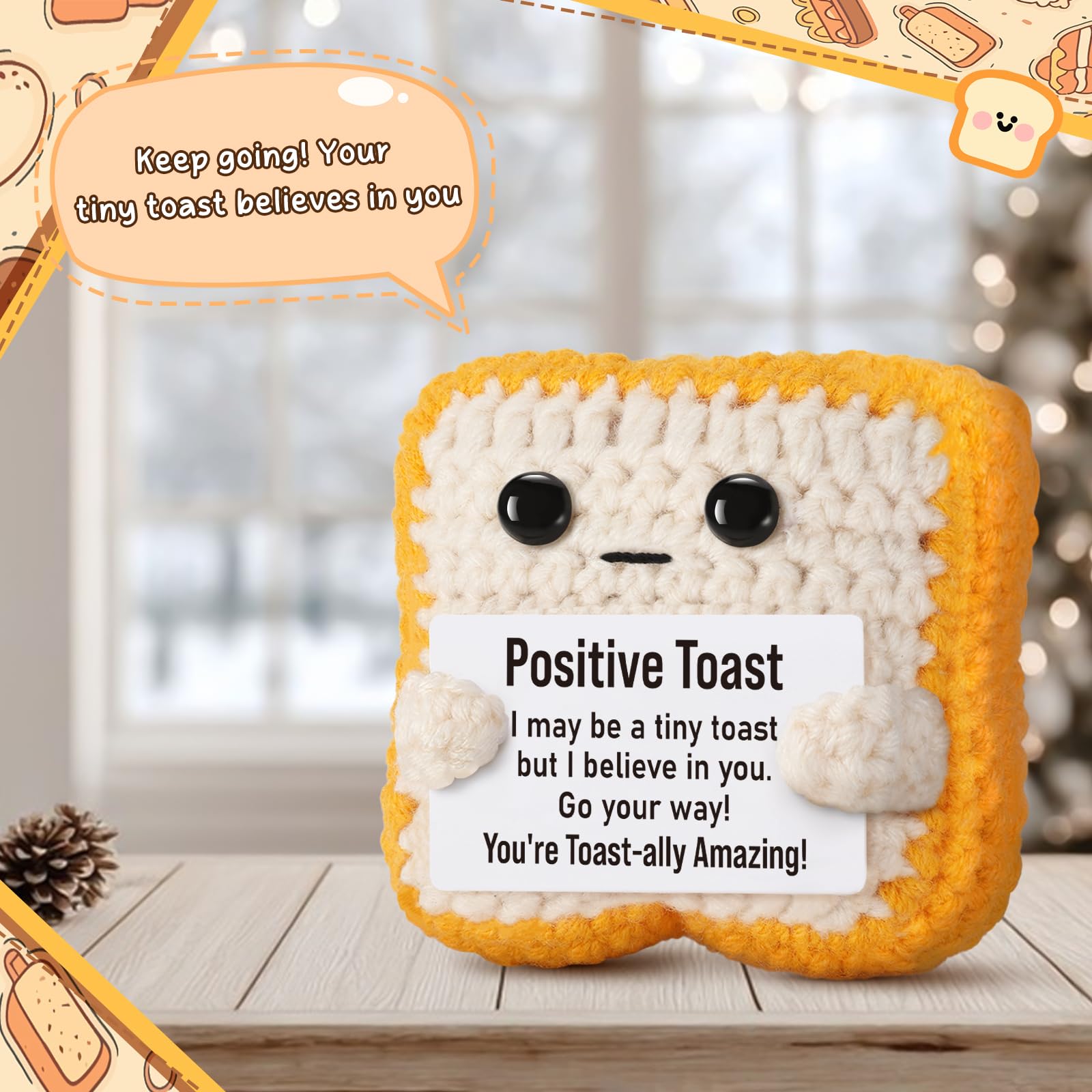 Handmade with Love & Positivity – This adorable crochet toast is crafted with soft yarn, bringing warmth and comfort. A tiny yet meaningful reminder to stay positive and keep going!