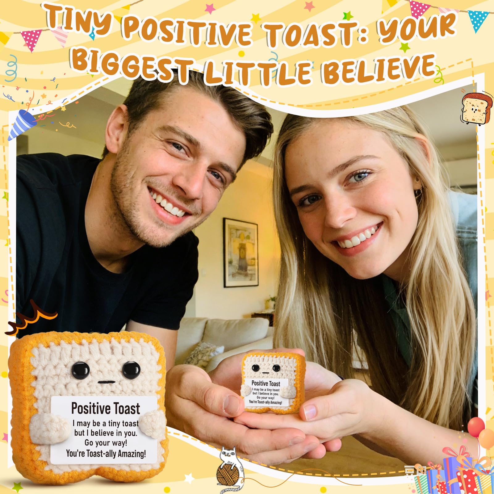 Encouragement in a Cute Package – Measuring approximately 2.8 x 2 inches, featuring the uplifting message, "I may be a tiny toast, but I believe in you!"