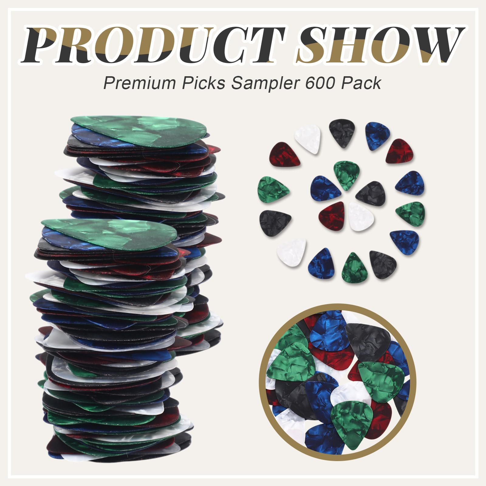 Package Content: you will receive 600 pieces of guitar picks for acoustic guitar, the sufficient quantity and rich designs can satisfy your various daily needs and replacement, and you can also share the enough amount with your partners and family members