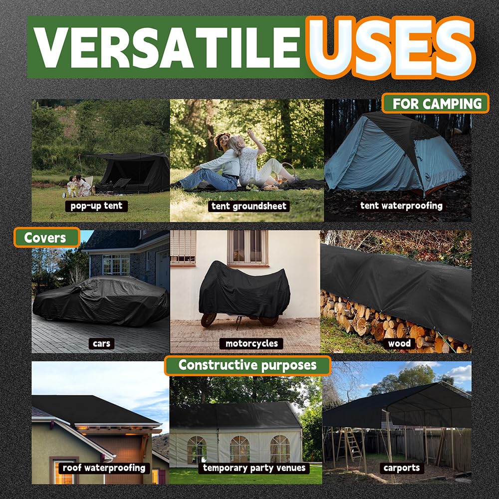 【MULTIPURPOSE USE】Protect your roof, truck, car, tent, pet cages, boat, or backyard pool, outdoor furniture from rain, sand, dirt, and sunlight, weather resistant. You never know how convenience of this tarp will be