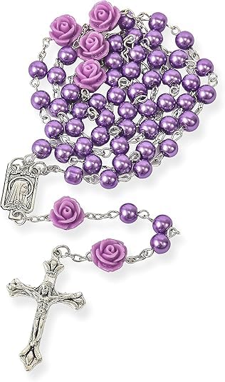 Catholic Purple Pearl Imitation Beads Rosary With 1.6" Jesus Crucifix