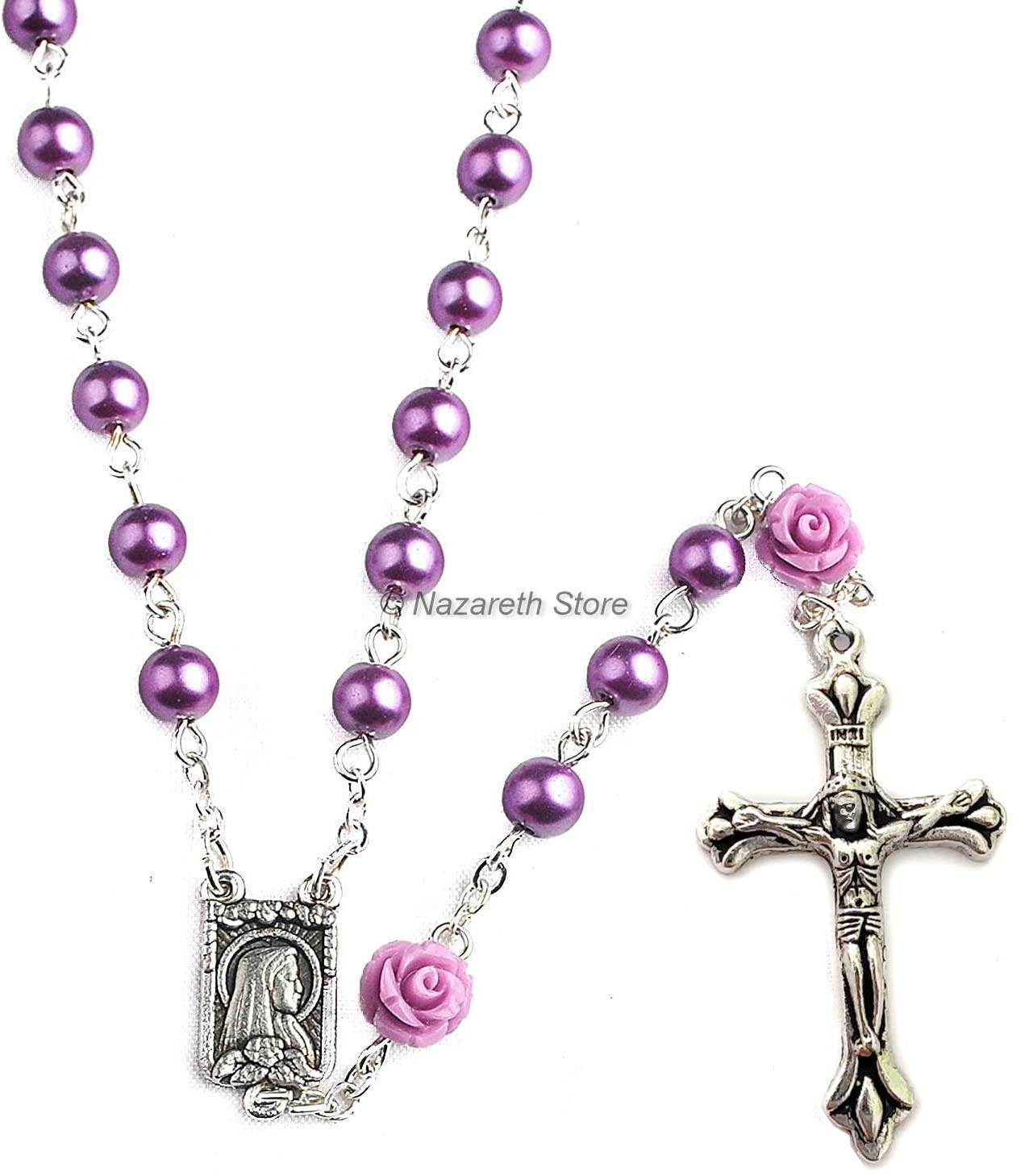 Crucifix (H X W) : 4 cm x 2.1 cm / 1.6" x 0.8", Rosary Length: 43 cm / 17", packed in purple Nazareth Store velvet protecting gift bag