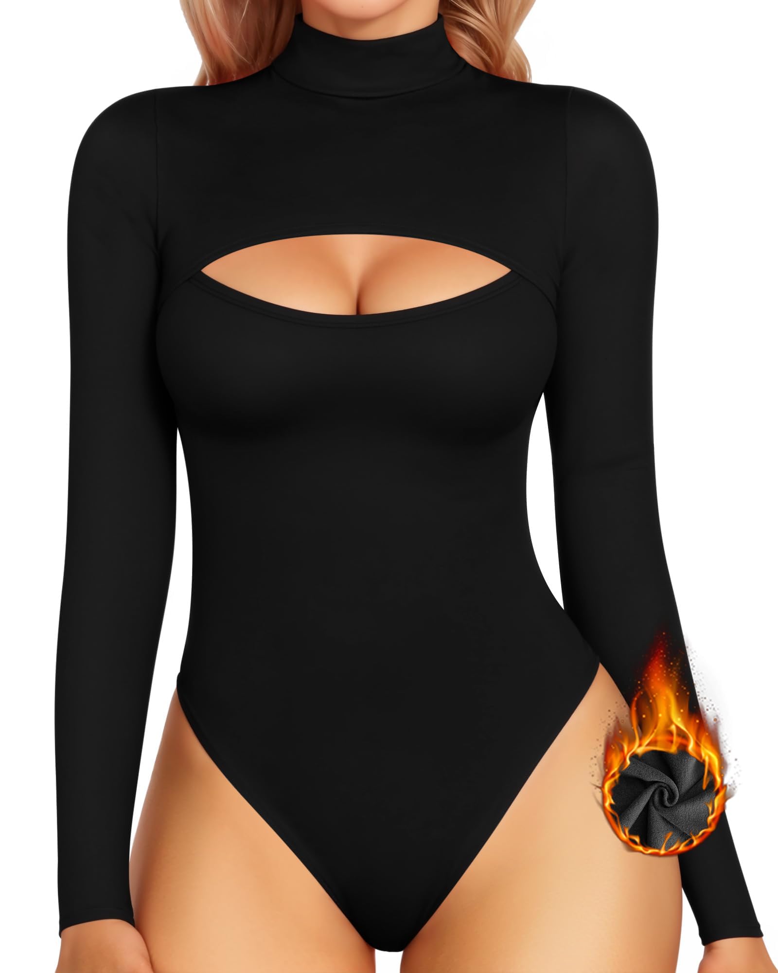 Design: Thermal bodysuit for women boast a stretch-fitted style with a mock neck and cut out detailing, offering a slim fit and exuding a casual yet elegant fashion vibe
