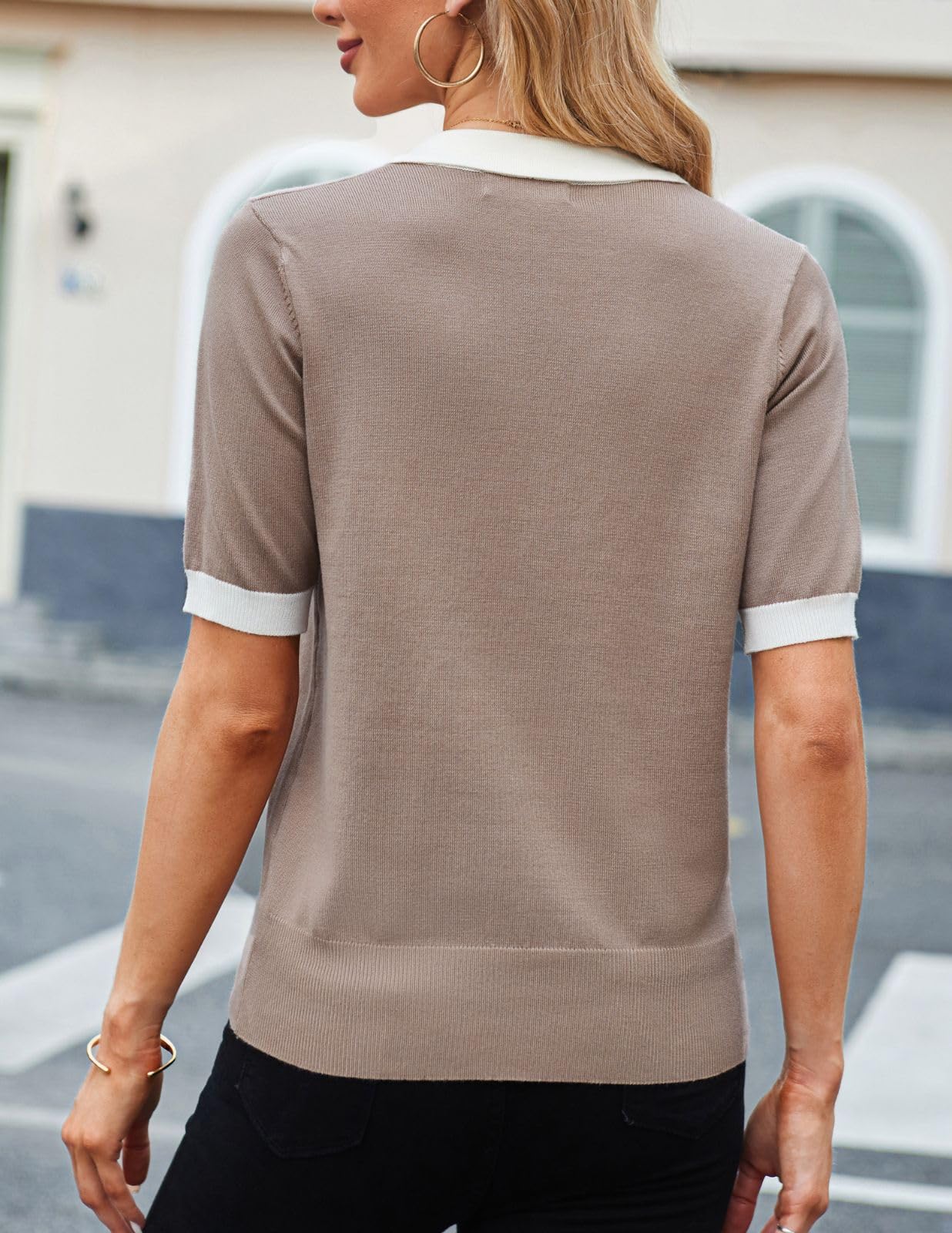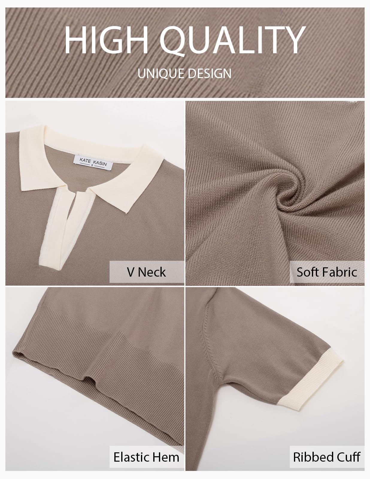 Features: V-neck short-sleeved, loose, casual, color block, ribbed knit pullover. The classic lapel sweater never goes out of style