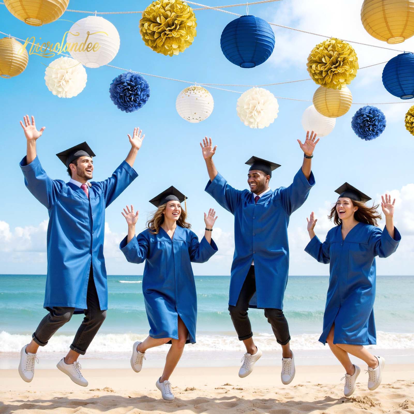 Classic Color: Paper lantern and pom pom set with 3 colors including navy blue, gold and ivory to add more shades to your party! These blue and gold background decorations are suitable for various themed weddings and birthday parties