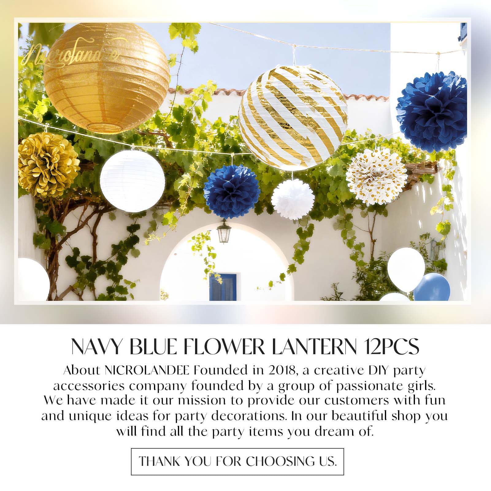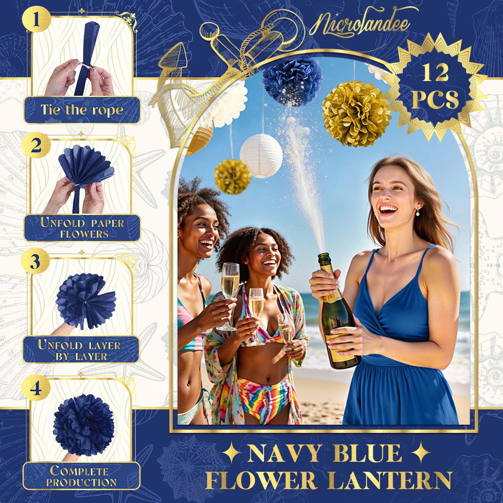 Package Includes: These party decoration sets come with 6 PCS navy blue party tissue pom poms and 6 PCS Navy Blue Gold Glitter Hanging Paper Lanterns. Total 12 PCS party decorations kits for blue gold Theme Party