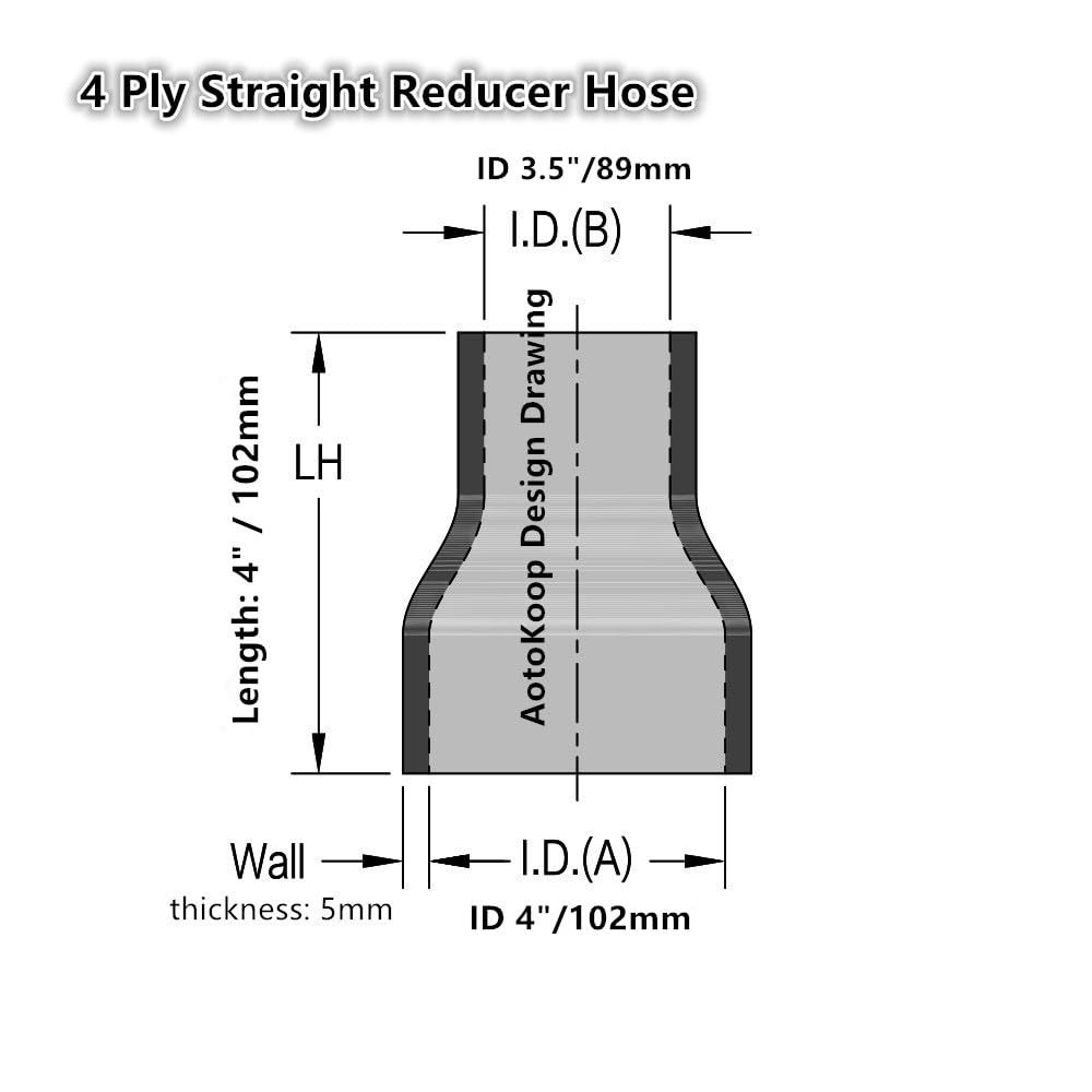 Size: Straight Reducer, ID 3.5" to 4" (89mm to 102mm), Length 3" (76mm), Made of High Temp Reinforced Pure Silicone