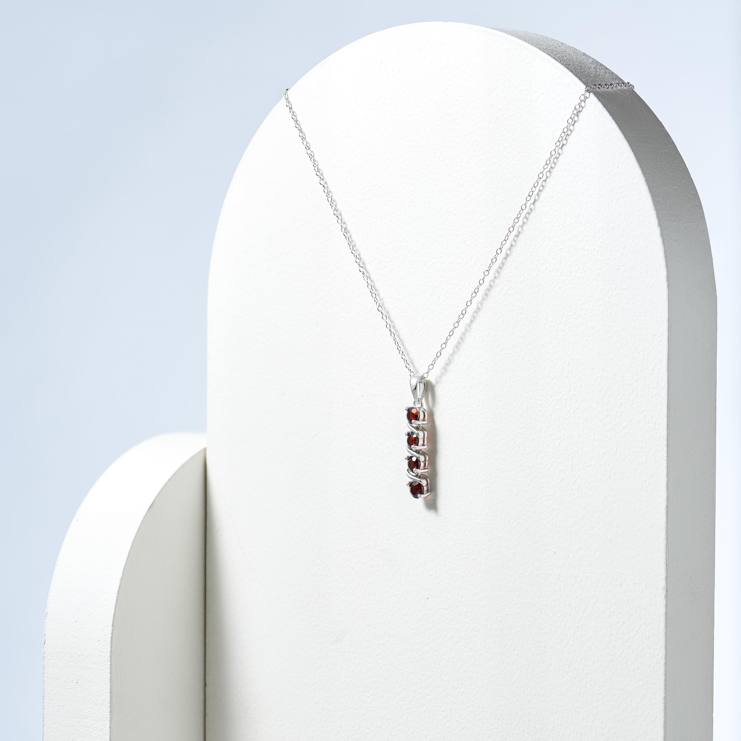 STYLE: Classic 4-stone vertical genuine garnet pendant necklace featuring 4mm round stones on an 18" cable chain is the perfect gift or addition to any jewelry wardrobe
