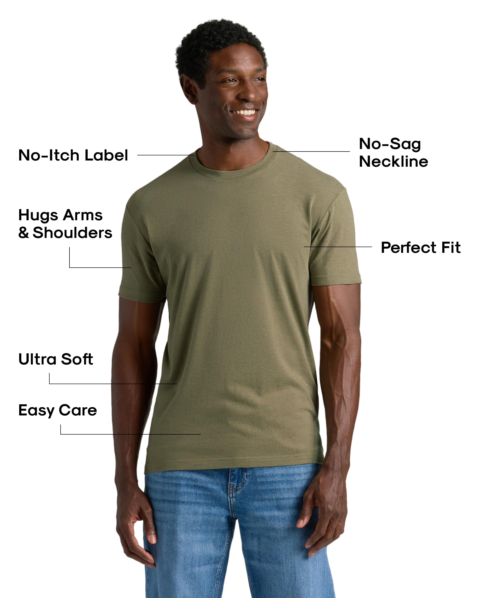ATHLETIC FIT: Designed to fit as expected, these mens t-shirts flatter the chest and shoulders while giving you room to move comfortably, making them ideal mens tee shirt pack for everyday wear or layering.