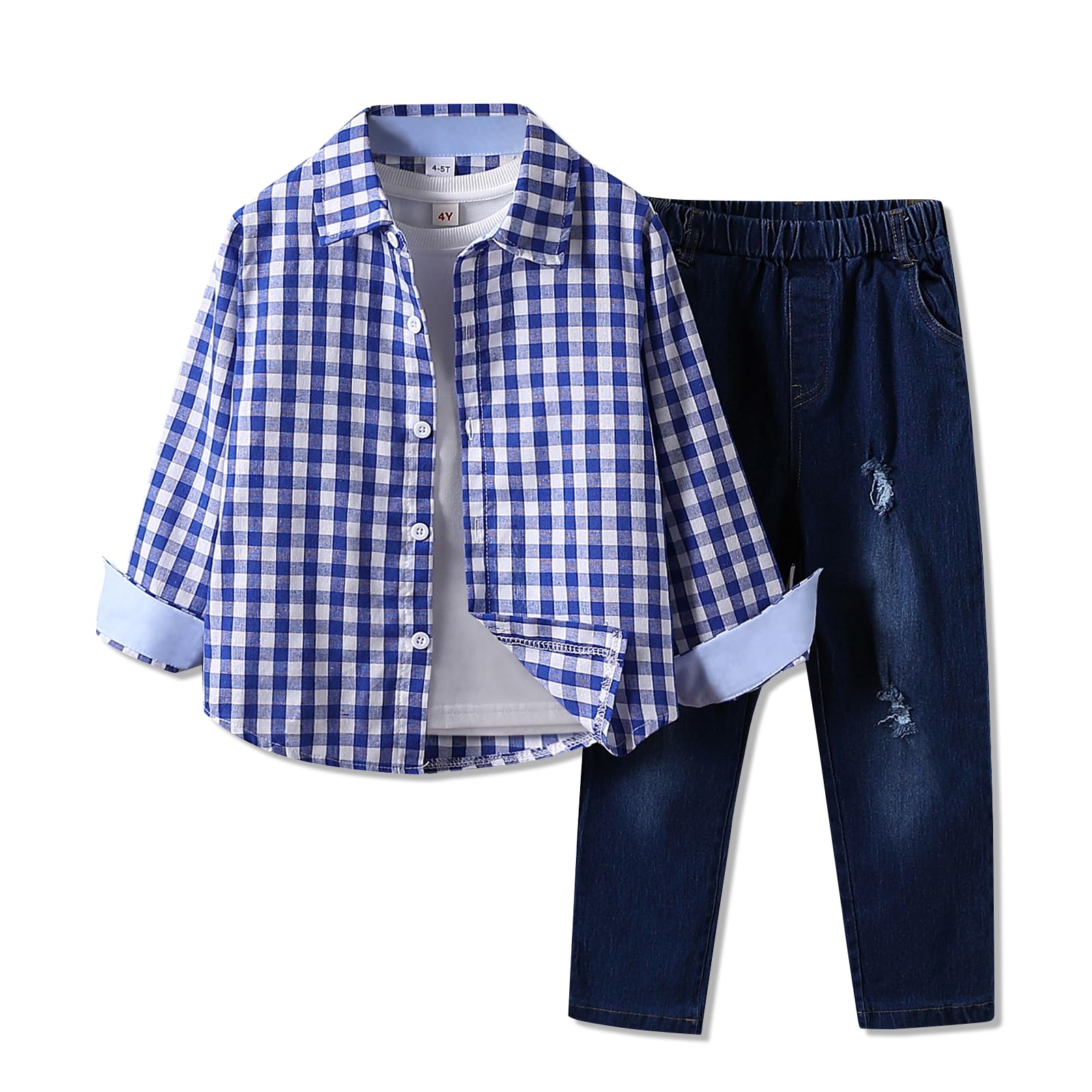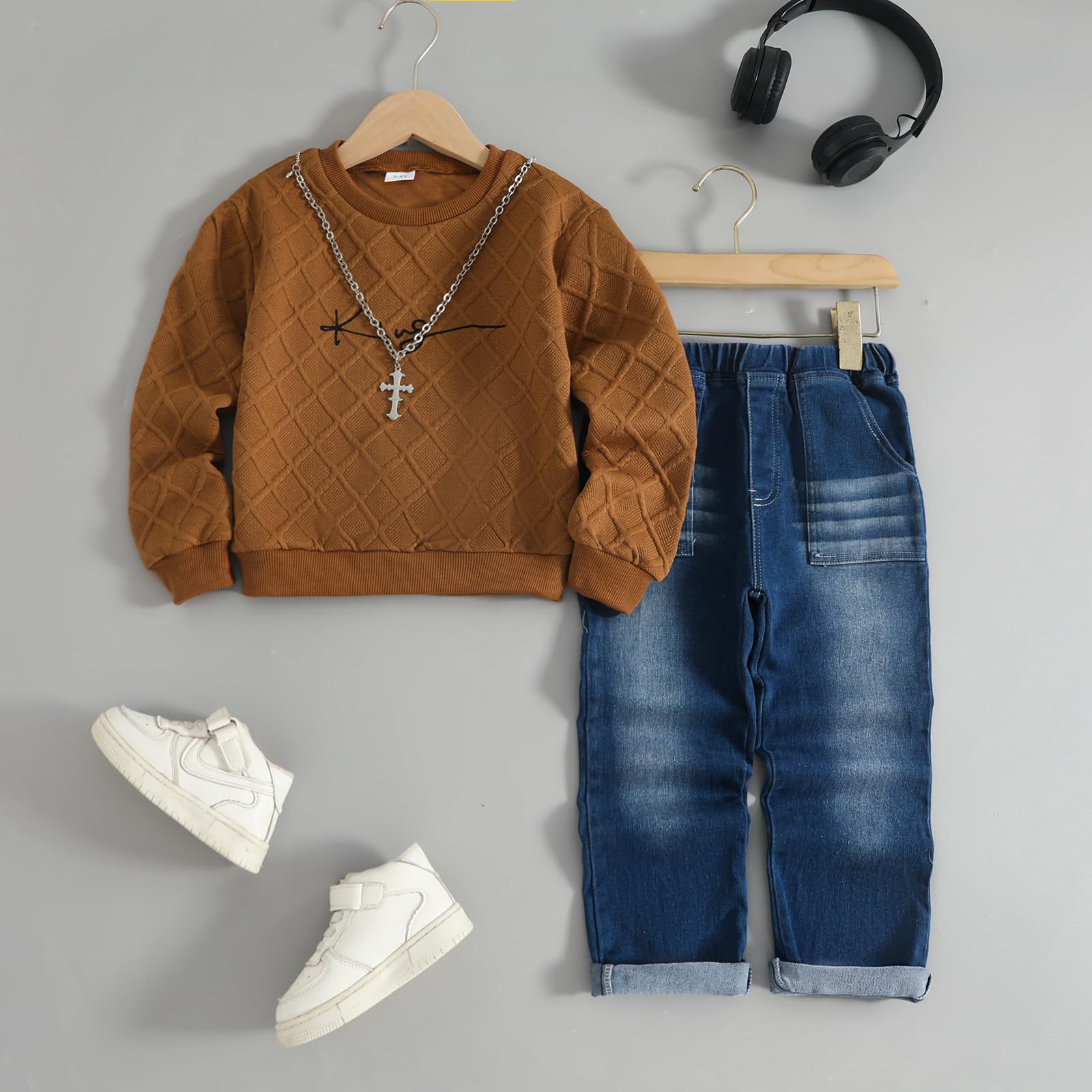 Practical Denim Pants: The included jeans come with a stretchy elastic waistband for easy dressing and two front pockets for carrying small treasures. These pants are a staple in any boy fall outfit, offering both comfort and utility