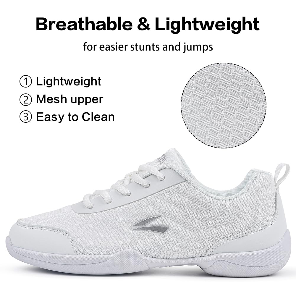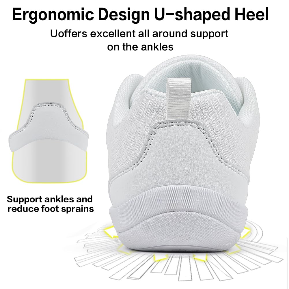 Breathable Cheer Shoes Women: Enhanced airflow mesh upper keeps feet cool and dry during intense cheerleading training, while the ergonomic design ensures unrestricted movement and long-lasting comfort.