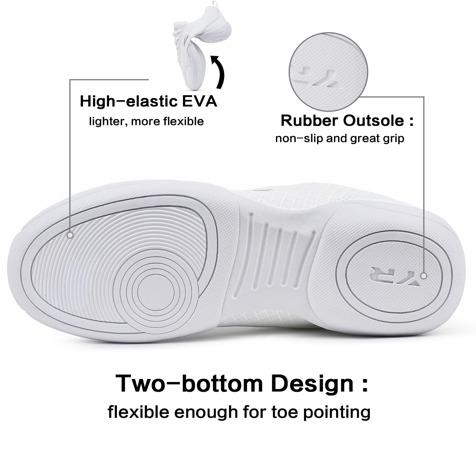 Flexible Training Shoes: Flexible rubber outsole allows cheerleaders to tumble, stunt, and jump with ease. It's flexible enough for toe pointing.