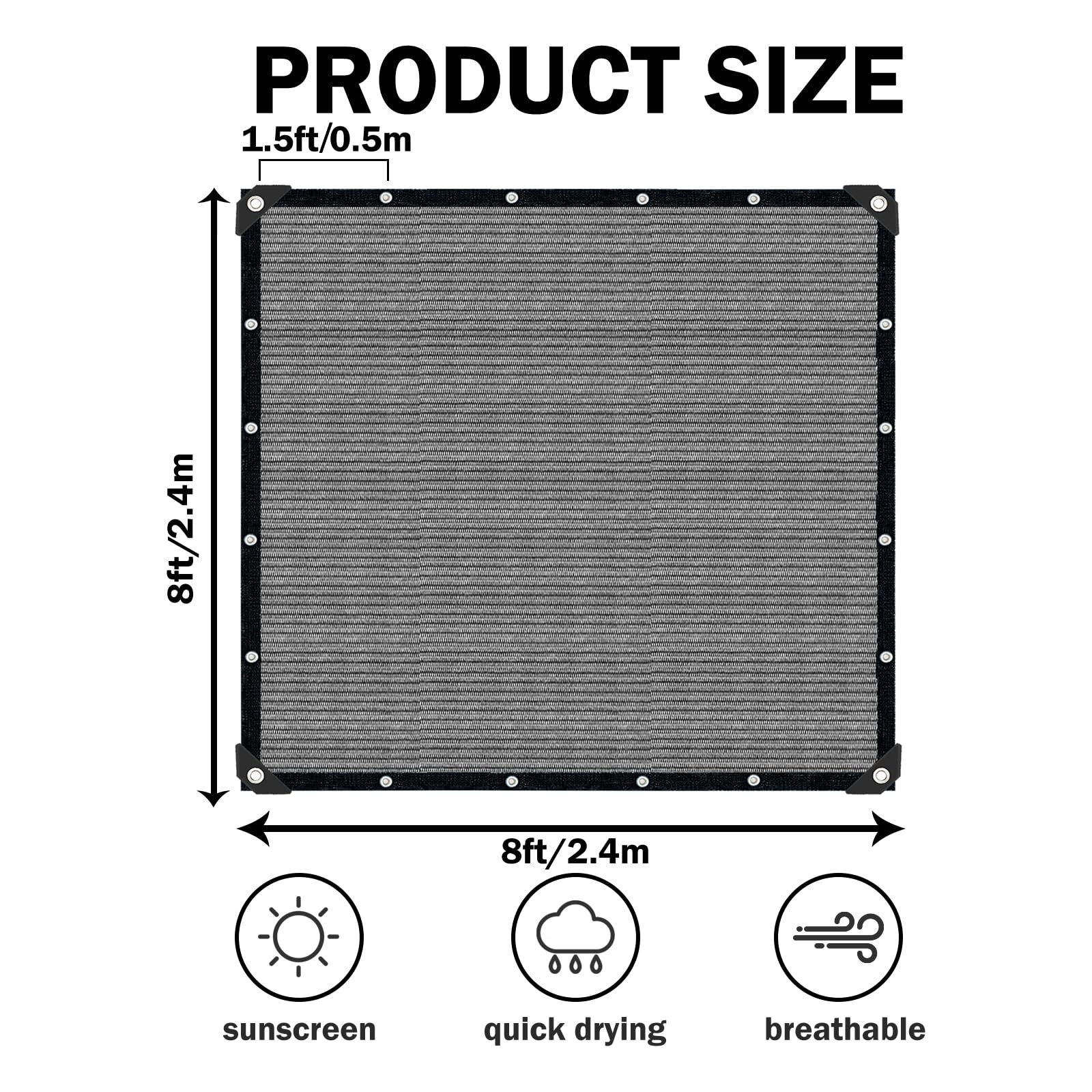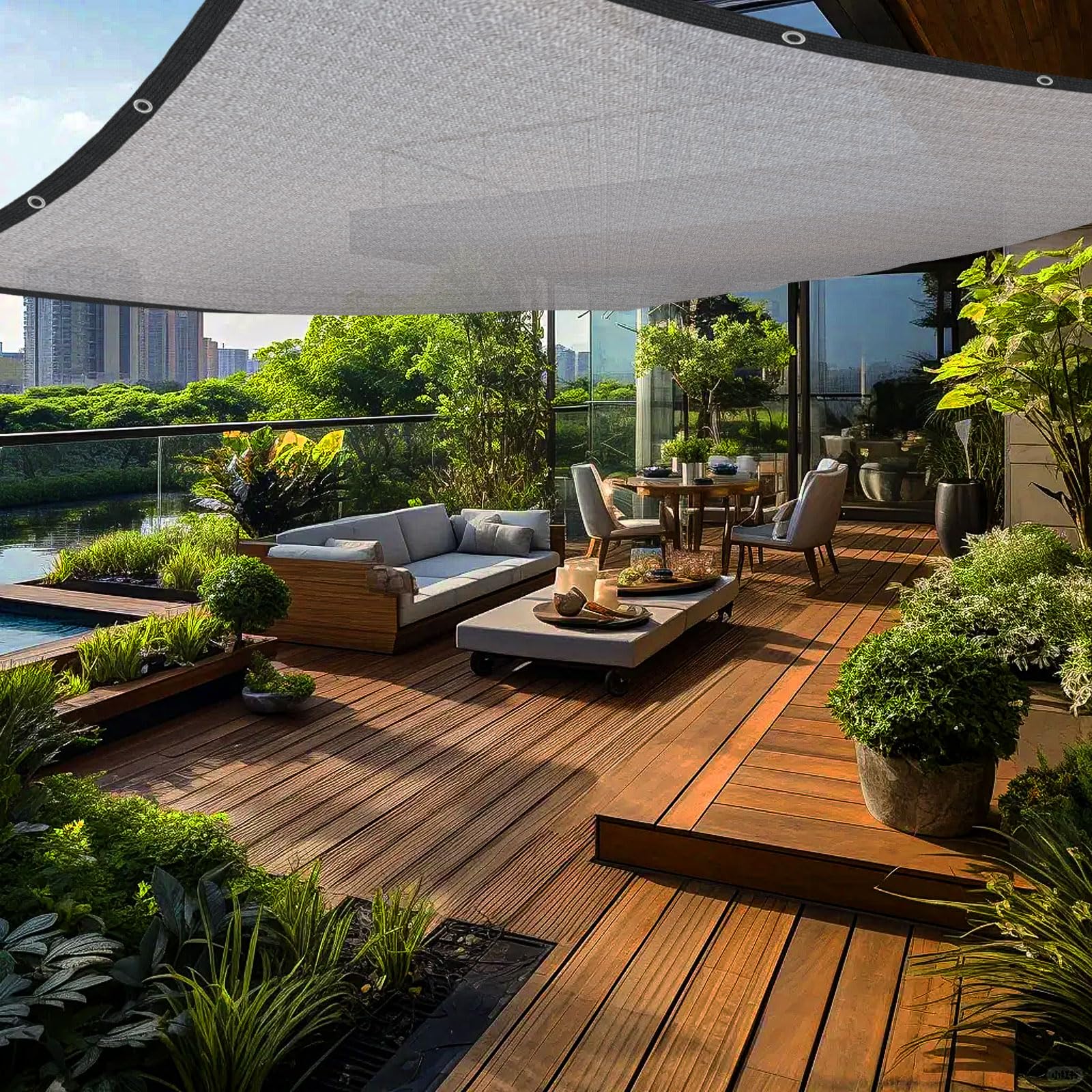 Premium Material: The shade fabric is made of high-density polyethylene (HDPE). It is a high-quality knitted fabric with excellent tear and abrasion resistance. At the same time, sun screens for patio allows the circulation of air and light, ensuring good ventilation and temperature control; its design allows rainwater to pass through and prevents water accumulation.