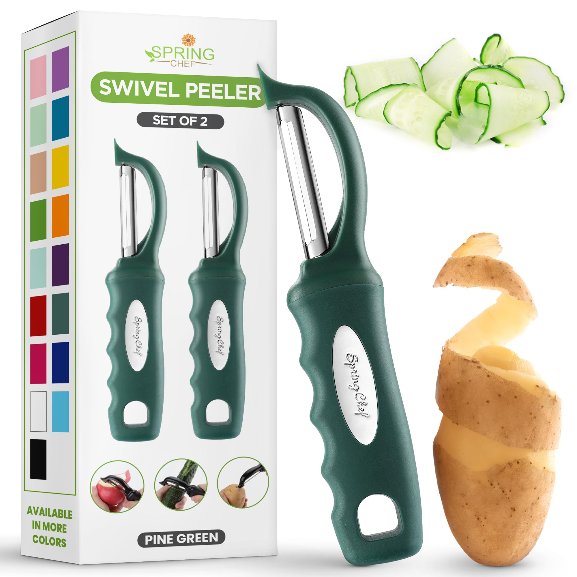 Smooth, Effortless Peeling - Dual Stainless Steel blades stay ultra sharp and swivel to glide along fruits and vegetables easily. Includes a built-in blemish remover.