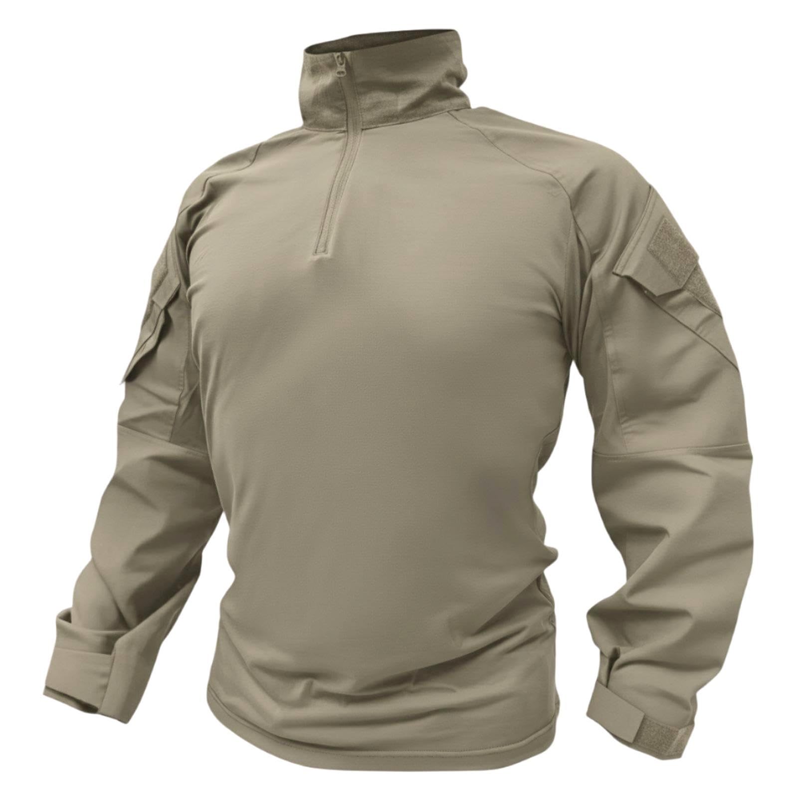 Design of airsoft shirt: The combat shirts for men features with stand-up collar with YCC zipper,underarm three-dimensional cutting design, thickened elbows. The tightness of the cuffs with hook and loop can be adjusted. Standing collar protects the neck and keeps it warm from the natural interference of the cold