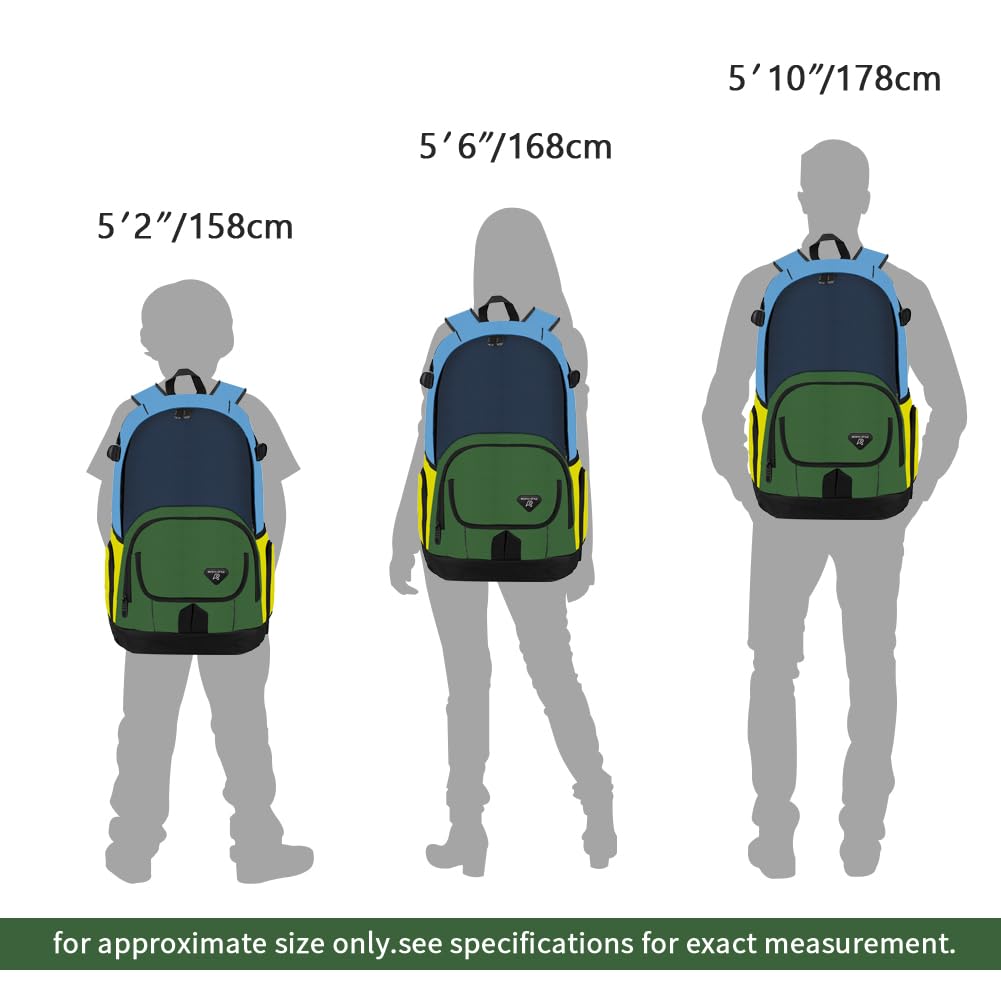 Description Flexible and ample storage space with scientific and reasonable layout design in Ricky-H’s conveniently portable bag makes getting out the door in the morning much easier. Multipockets layout allows small items (eg. Phone, pens, keys, chargers, power bank, sunglasses, ect.) and big items (eg. Laptop, A4 binders, textbooks, notebook, lunch box, sweater, towel, ect.) being organized neatly. -Suitable Occasion: School, Travel, Camping, Hiking, Gym, Office, Gift, Versatile. Whether to cater your day-to-day organizing basis or your "extra-curricular" uses, our backpack is versatile enough for many use, to be a book bag during the week and a travel backpack on weekends. Great choice as school bookbag or daypack, overnight backpack. Or even as diaper bag. -Applicable People: Men, Women; College/University Campus Students, High school, Middle school, Elementary, Primary school boys & girls; Parents, ect.)-Comfort with featuring ergonomic designed adjustable padded reinforced shoulder straps, makes the backpack all day use as a breeze. -High-quality, strong, long lasting nylon fabric builds our sturdy and solid backpack with great performance on water-resistance, anti- striking and anti-scratching. -Twin metal zippers with fabric flaps over to keep water out of the backpack and last much longer than plastic ones. Easy at opening and closing the backpack.Double stitching at stress points adds valuable security to seams, handles, and straps, enhancing the durability. And additional top handle provides extra help while lifting or moving the backpack. *Notes:1. Differences of 0.5-1 inch may occur due to manual measurement. 2.Item color displayed in photos may vary slightly from the actual product due to monitor color settings.