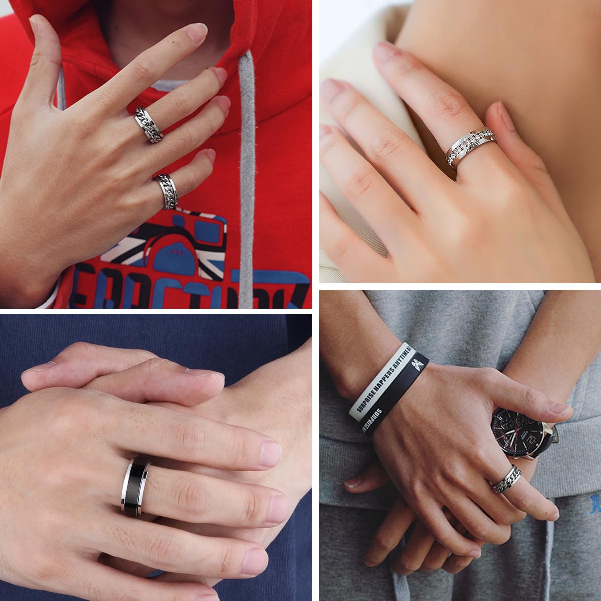 γATTENTIONγ: Only 2 CHAIN RINGS in this ring set can be spins, so please think carefully if you buy these rings specifically to fidget with. EIELO Jewelry committed to provide the best jewelry and the best services to our customers. If you have any question about our product, please feel free to contact us. We will try our best to provide you the best shopping experience.