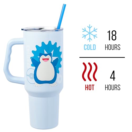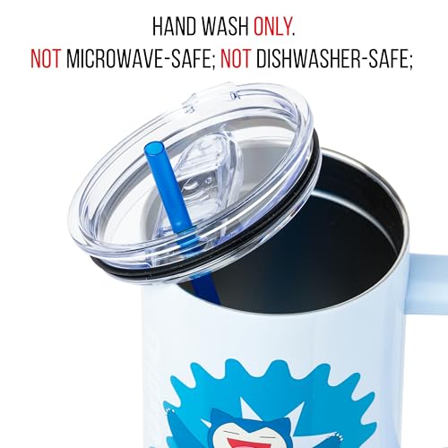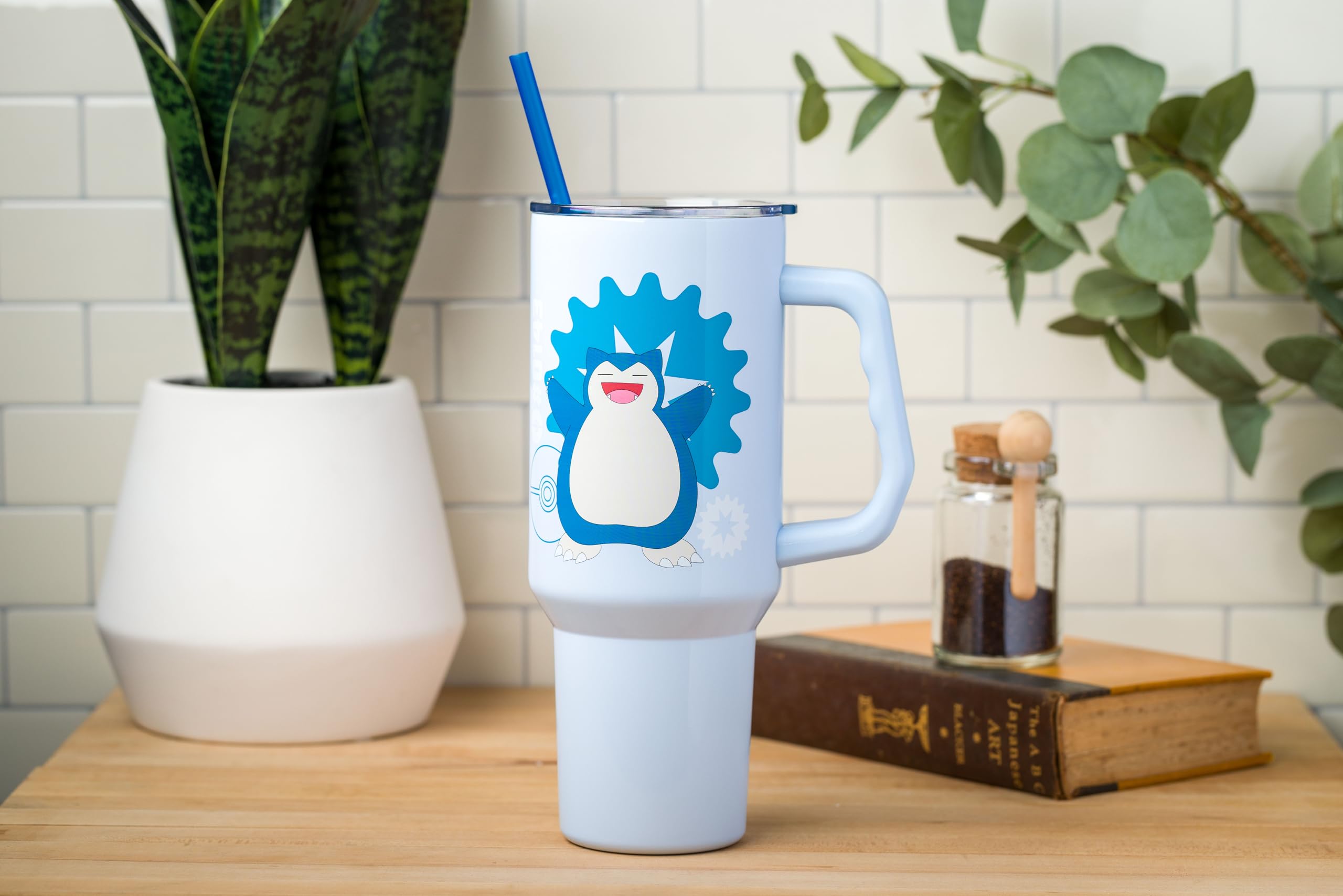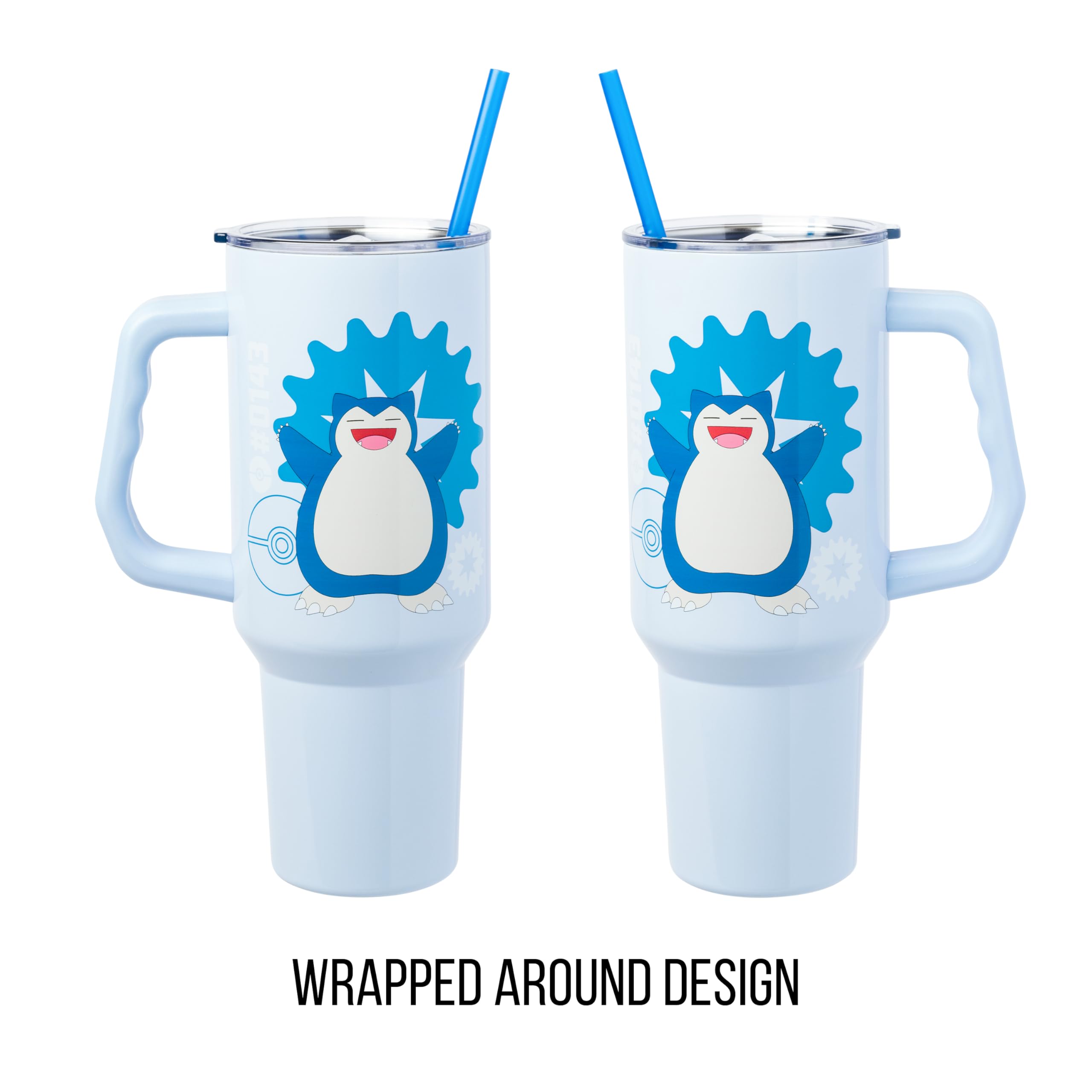 Catch them all with this themed tumbler! Stainless steel tumbler features Snorlax in an adorable pose. Tumbler is blue. Design is placed on both sides of the tumbler. NOT microwave or dishwasher-safe; HAND WASH ONLY. This stainless steel tumbler holds up to 40 ounces of your favorite beverage. Stainless steel tumbler comes with a secure screw-on lid, reusable straw, and handle making this the perfect cup to keep you hydrated on all of your PokΓ©mon hunts. Tumbler is designed to fit in a standard cup holder. This tumbler, with its epic designs, makes a great gift for your favorite Snorlax fan. Showcasing this beloved character, this item is perfect for birthdays, holidays, and other gift exchanges. Take a dive into the fictional world with Silver Buffalo! Silver Buffalo provides fans with official merchandise from their favorite characters. Working alongside licensors and brands, we create unique and imaginative products which are designed with great care and detail. Silver Buffalo aims to connect fans to their favorite cartoon characters, superheroes, movies, tv-series, and more. Celebrate your fandom!
