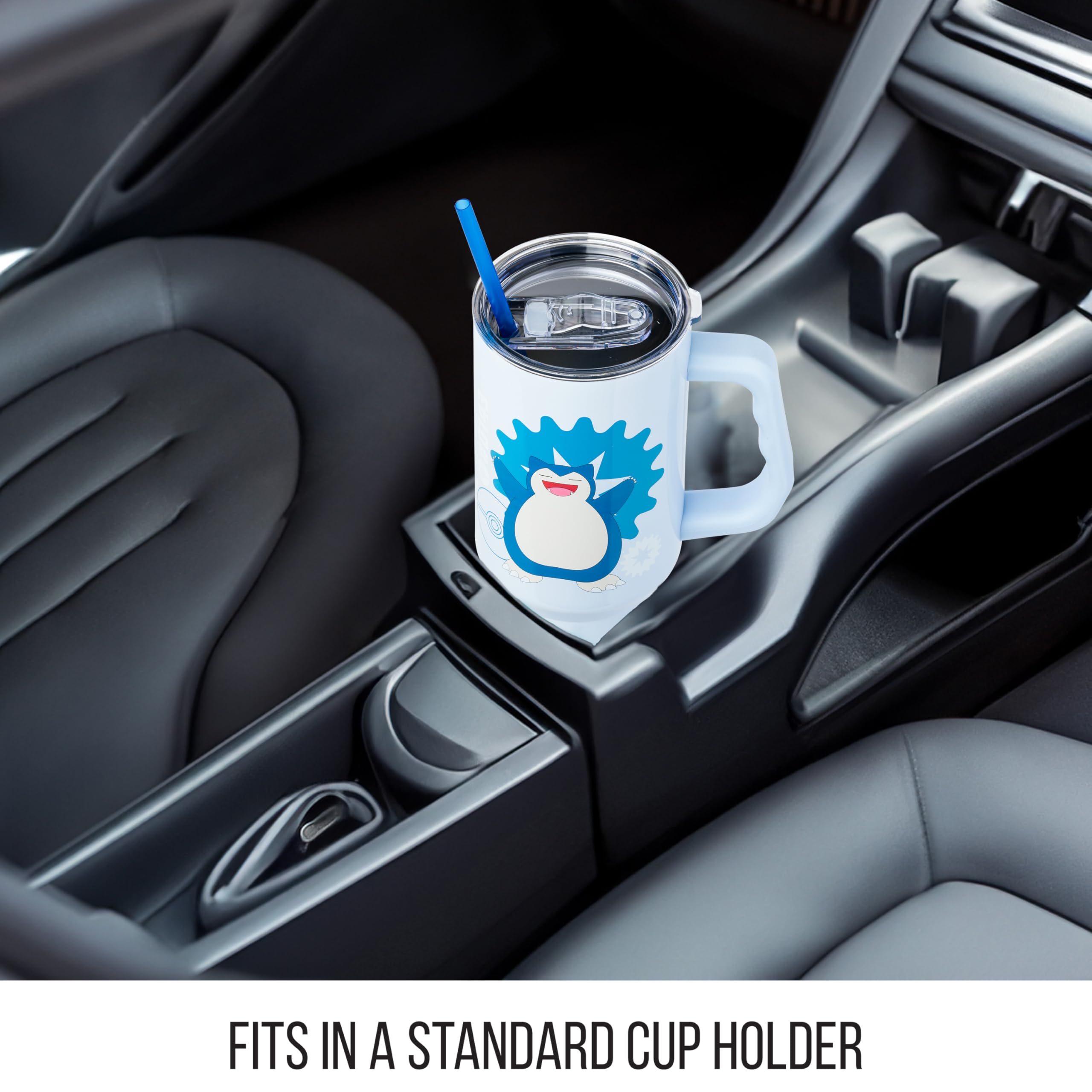 HYDRATE ON THE GO: This stainless steel tumbler holds up to 40 ounces of your favorite beverage. Stainless steel tumbler comes with a secure screw-on lid, reusable straw, and handle making this the perfect cup to keep you hydrated on all of your PokΓ©mon hunts. Tumbler is designed to fit in a standard cup holder.