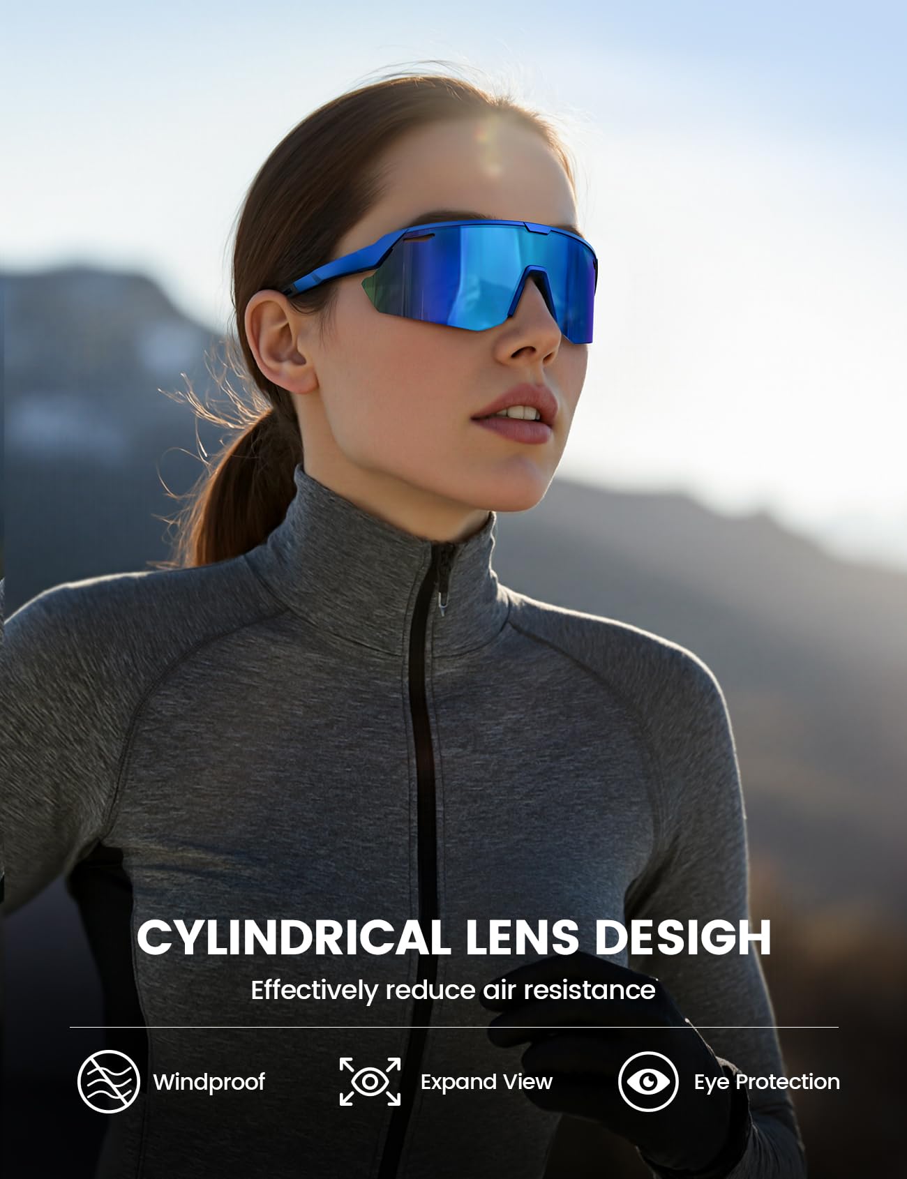 【 Impact-resistant TAC Lens & Super Wide Field of View】The cylindrical lens design is matched with the surround structure, which allows you to have a wider field of view for safer riding, and also effectively reduce air resistance. With impact-resistant TAC lenses, keeping you safe during exercise.