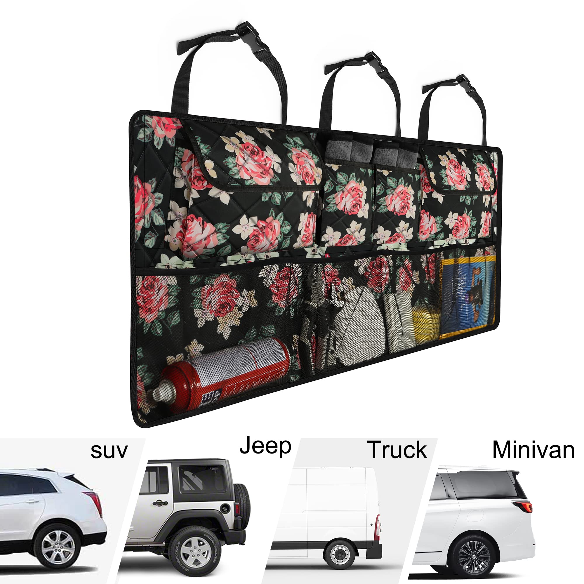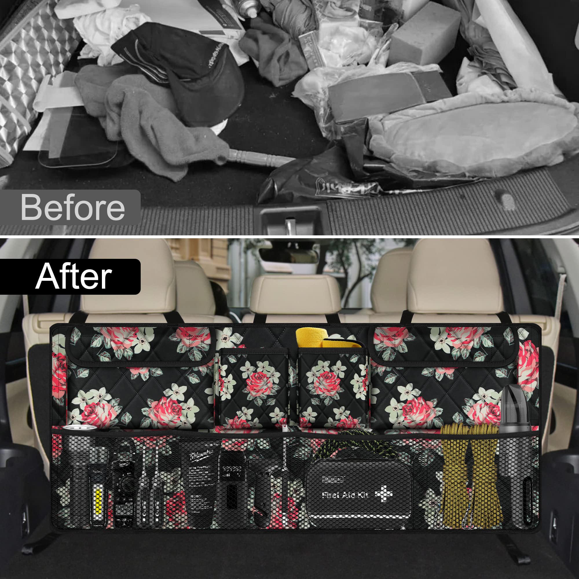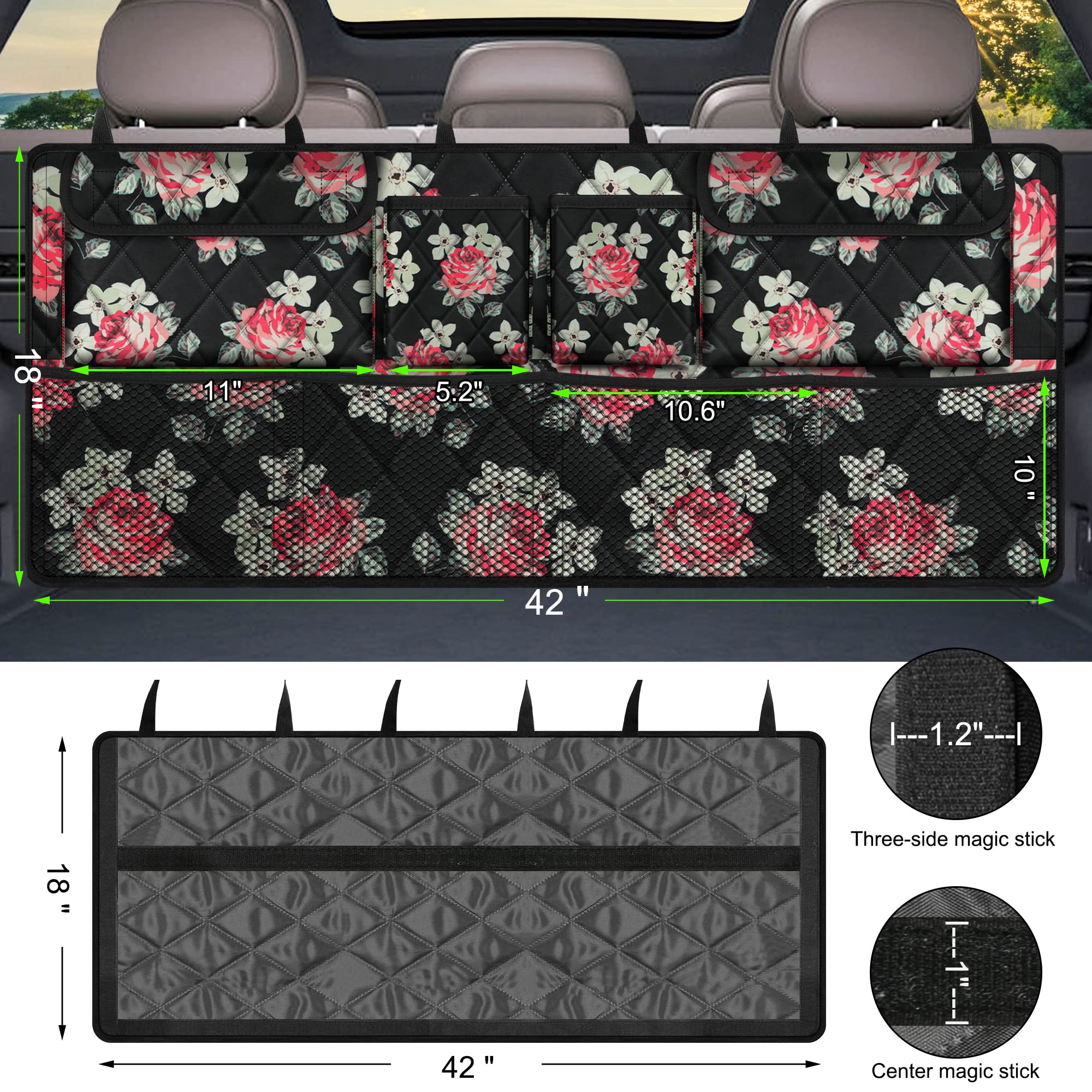 Car Trunk Organizer,Large Capacity Backseat Trunk Organizer(42"*18"),Collapsible Car Storage Bag with 8 Pocekt,Car Organizer for SUV/MPV/Truck - Floral
