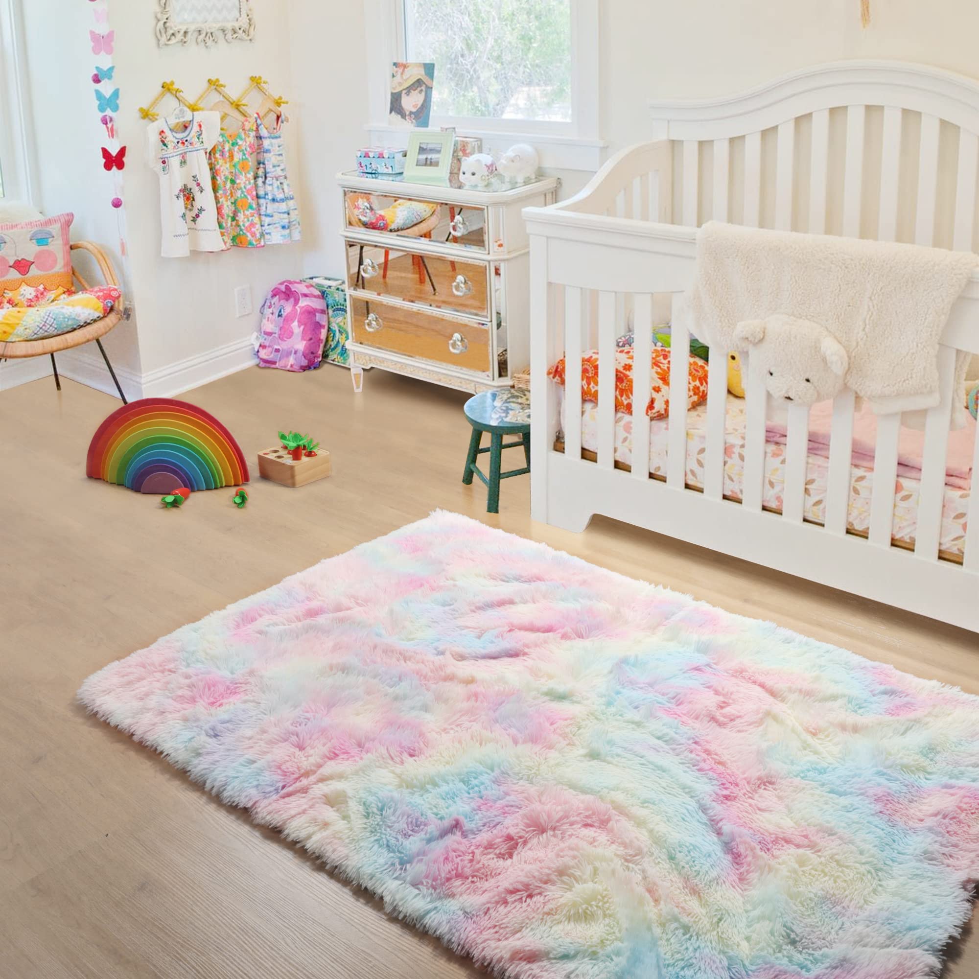γ Safe Materials & Good Giftγ This super soft, velvety carpet is made from eco-friendly polyester, does not contain any harmful substances, no smell, no shed, which is protecting floors from stains and perfect for homes with children and pets.The plush texture offers comfort for barefoot walking and tummy time, the rich color choices and furry appearance add fun to any room-Also a good gift for grandson, granddaughter, little girl boy, baby girl boy, teenage teen girls, they will love it.