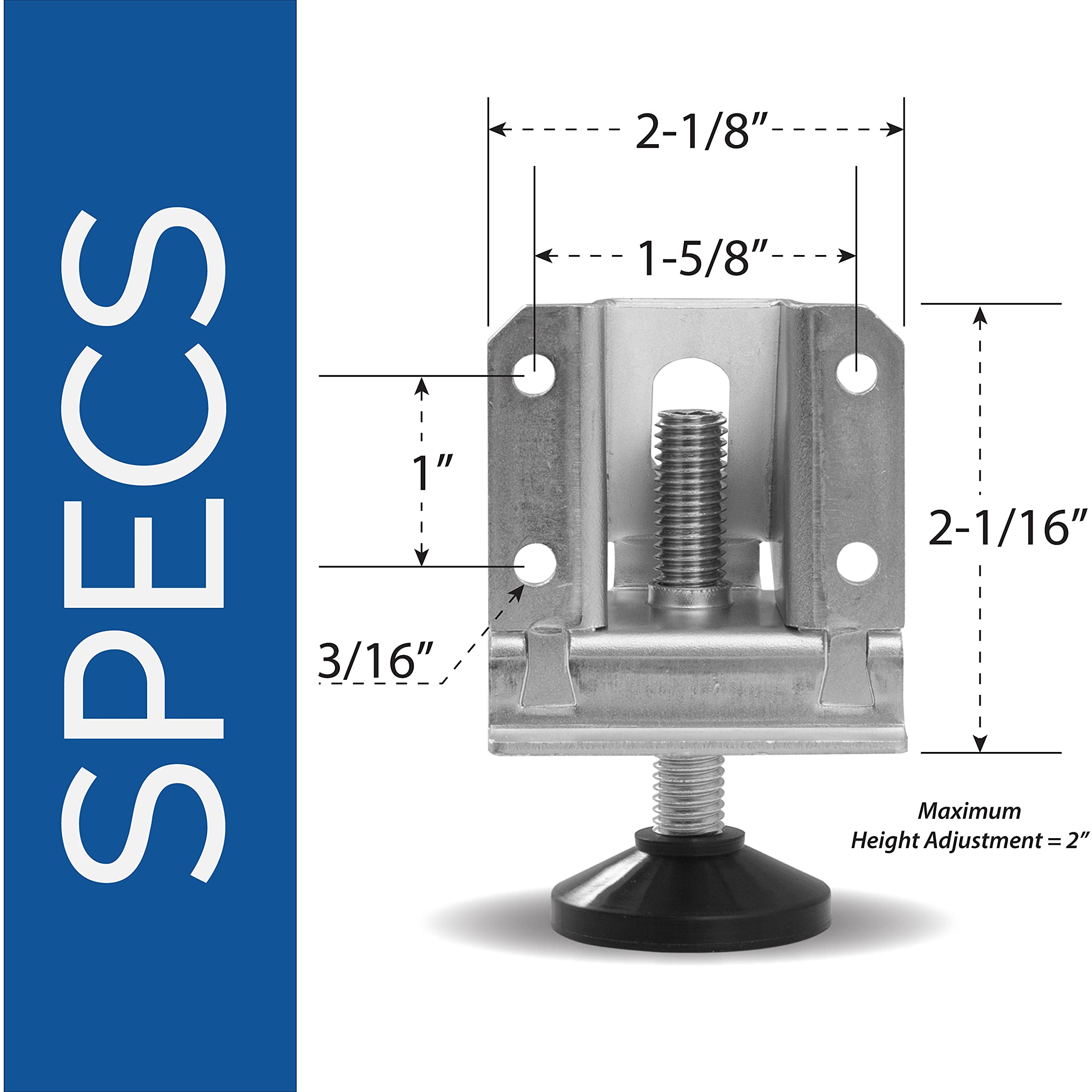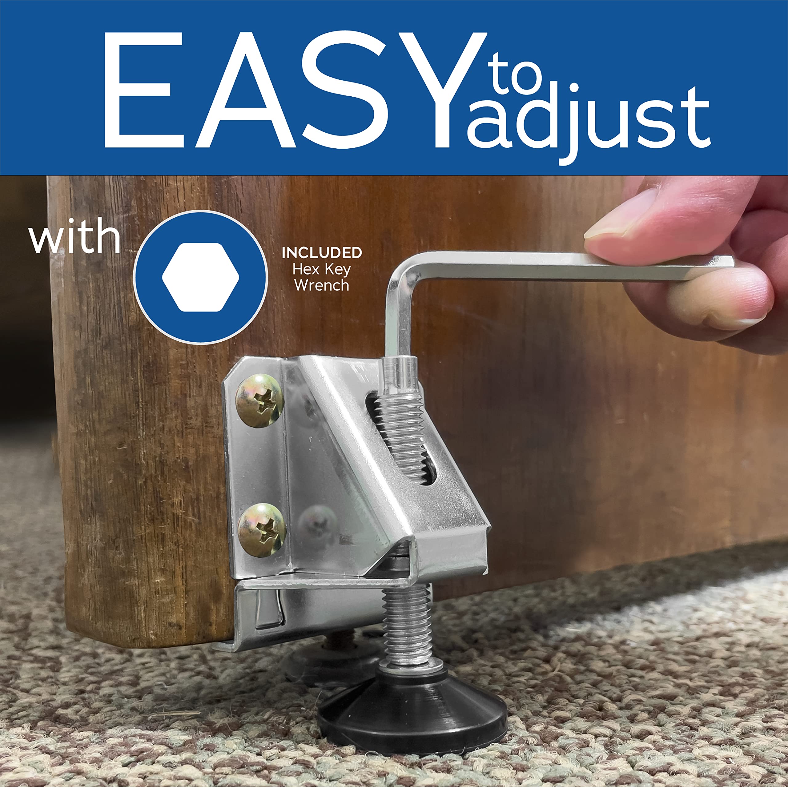 MICRO-ADJUST WITH EASE - Our adjustable furniture levelers are easily dialed in from above with the included hex key, eliminating awkward reaching and ensuring perfect alignment for your projects and furniture. Adjusts from 0" to 2" in height.