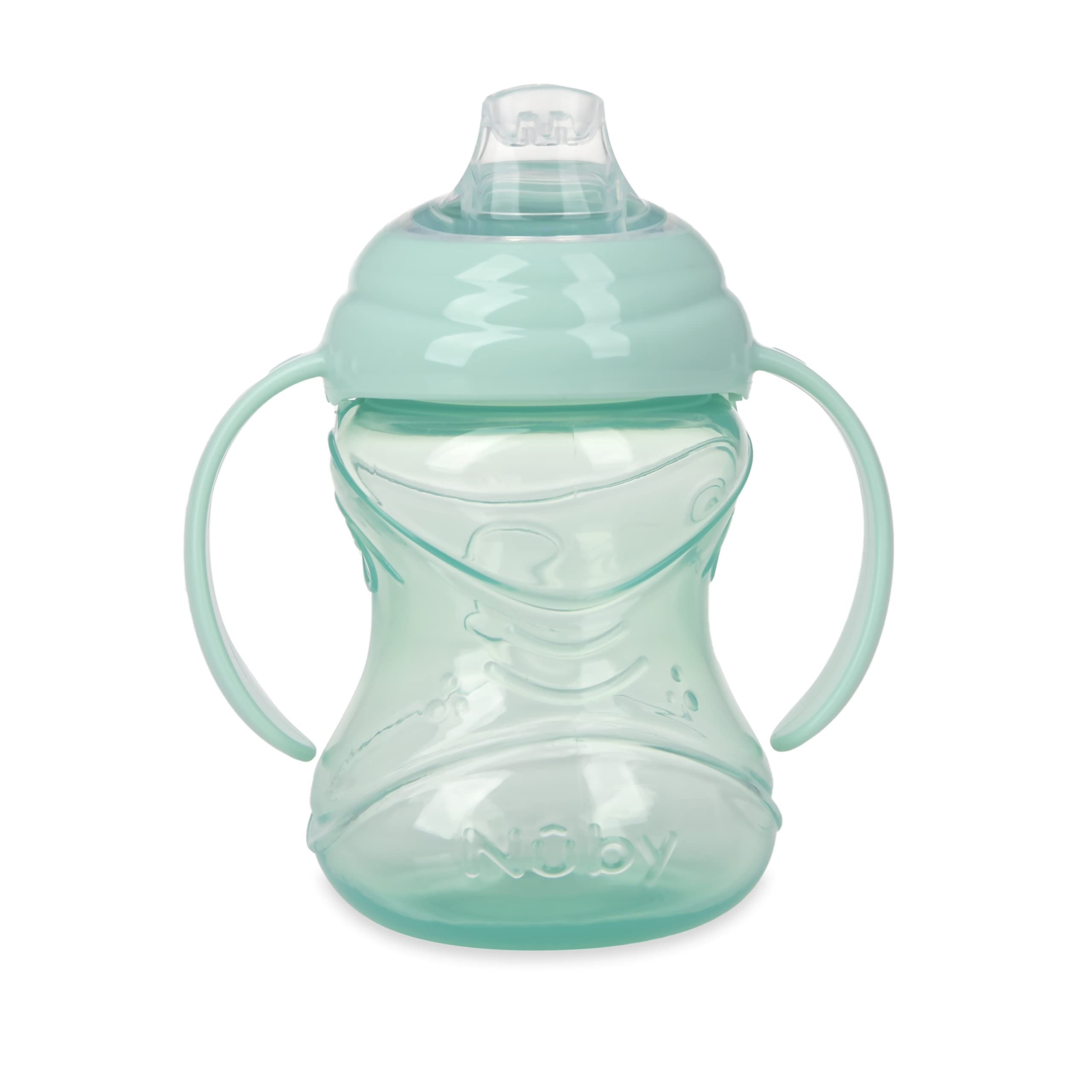 No more worrying over spills and leaks! Nuby’s Clik-It Soft Spout Trainer Cup's lid "clicks" when twisted into place, so parents know it’s securely attached to the cup base. Nuby’s Clik-It Soft Spout Trainer Cup has a soft silicone spout designed to prevent drips, spills, and messes. Active little ones are animated, even while holding (or dropping) their drinks. That’s why Nuby designed a cup spout with a pressure-sensitive TOUCH-FLO valve. As children sip on the spout, the TOUCH-FLO valve opens to allow liquid through. When sipping stops, the TOUCH-FLO valve closes, ensuring a leak-resistant cup. The 2-handle design makes it easy for little hands to grasp and hold the cup. Whether your little one sits still or keeps moving and shaking while sipping, Nuby has you covered.