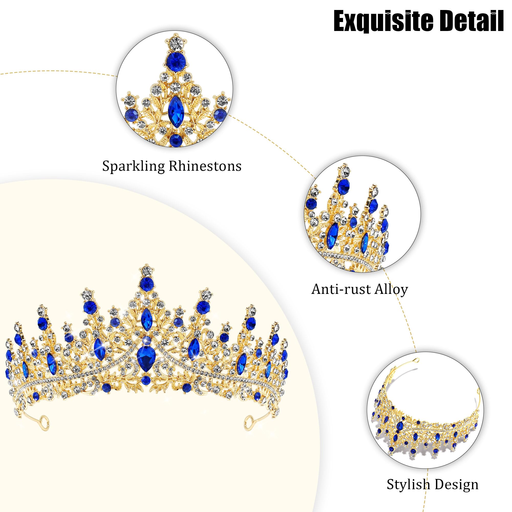 π[Shine Like A Diamond] Royal blue tiara is finely crafted, sparkling rhinestones match well with the elegant alloy headband. Classic design have a stylish and timeless appeal, bringing elegance and glamor.