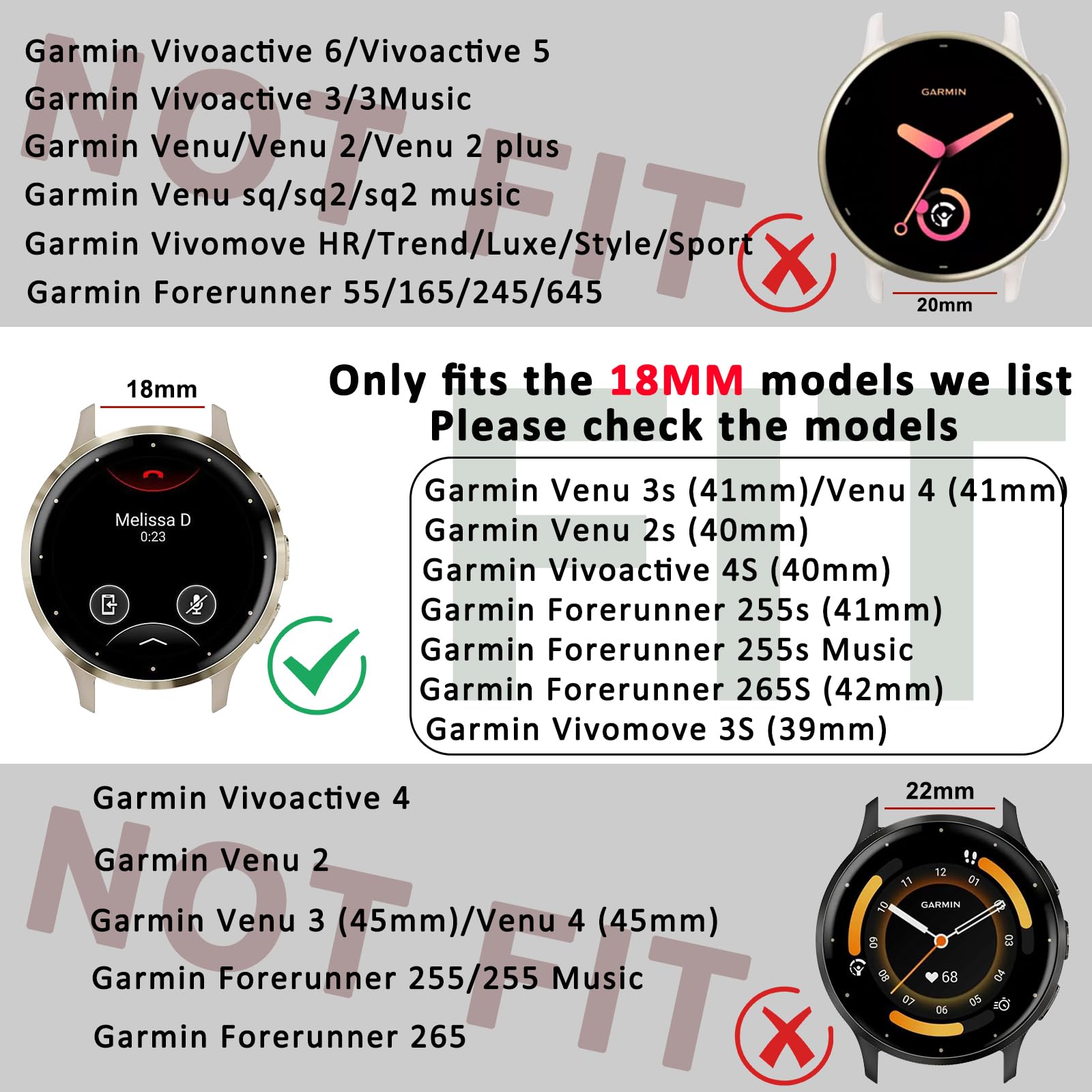 【Compatible Devices】: Perfect compatible for 18mm metal watch band compatible with Garmin Venu 3S (41mm) / Venu 4 (41mm)/Garmin Venu 2S (40mm), Garmin Vivoactive 4S / Garmin Vivomove 3S, Garmin Forerunner 255S/255S Music, Forerunner 265S. (Note: Only fits the models we list, please check the compatible models we list, and make sure your watch models match it)
