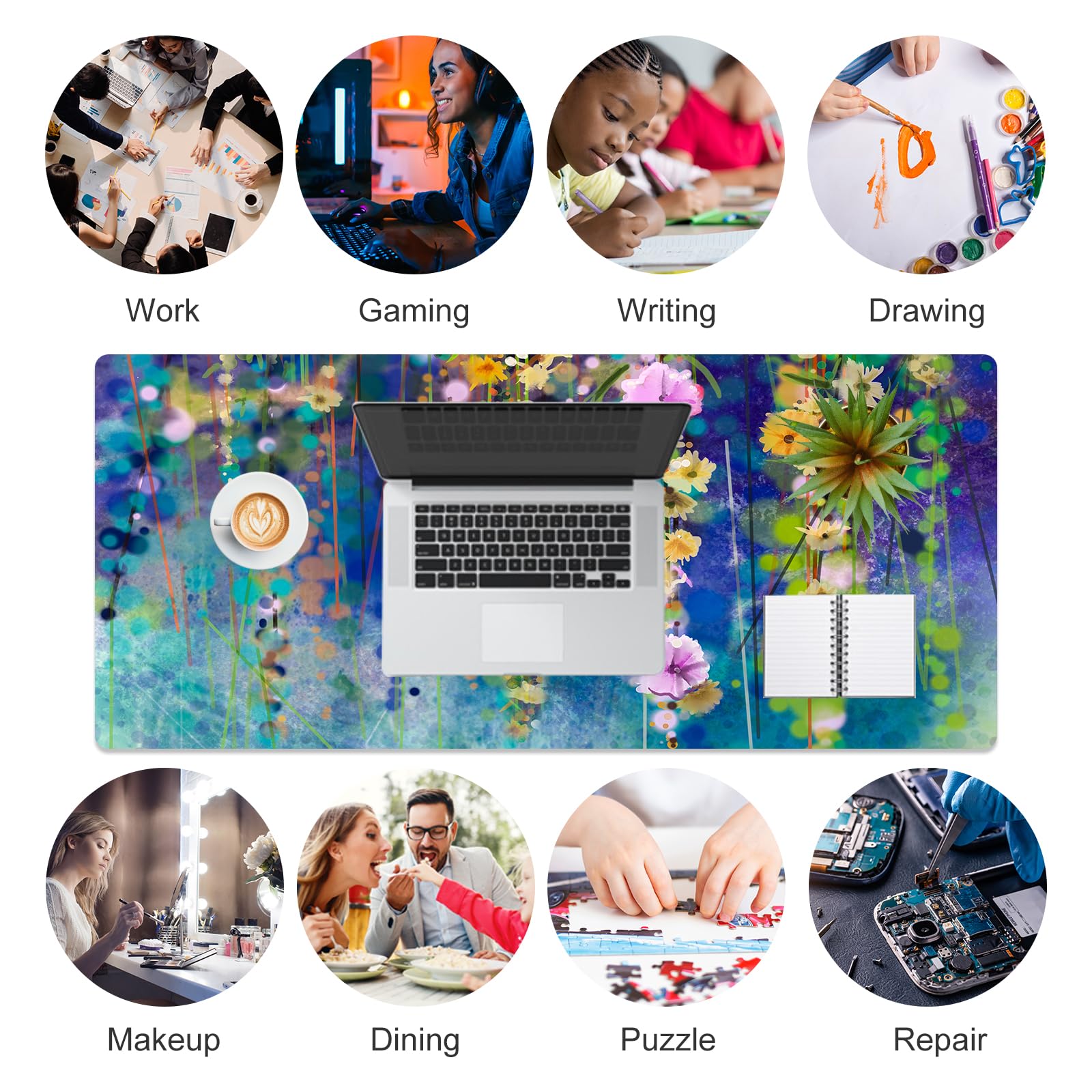 Extended Size Desk Mat - 80×40cm (31.5×15.7 inch), this cute desk pad is large enough to accommodate your mouse, keyboard, computer, laptop, and other desk accessories. This large mouse pad provides plenty of room for home / office writting, drawing or gaming with extended arm movements. The desk organizer keeps your desktop organized and clean!