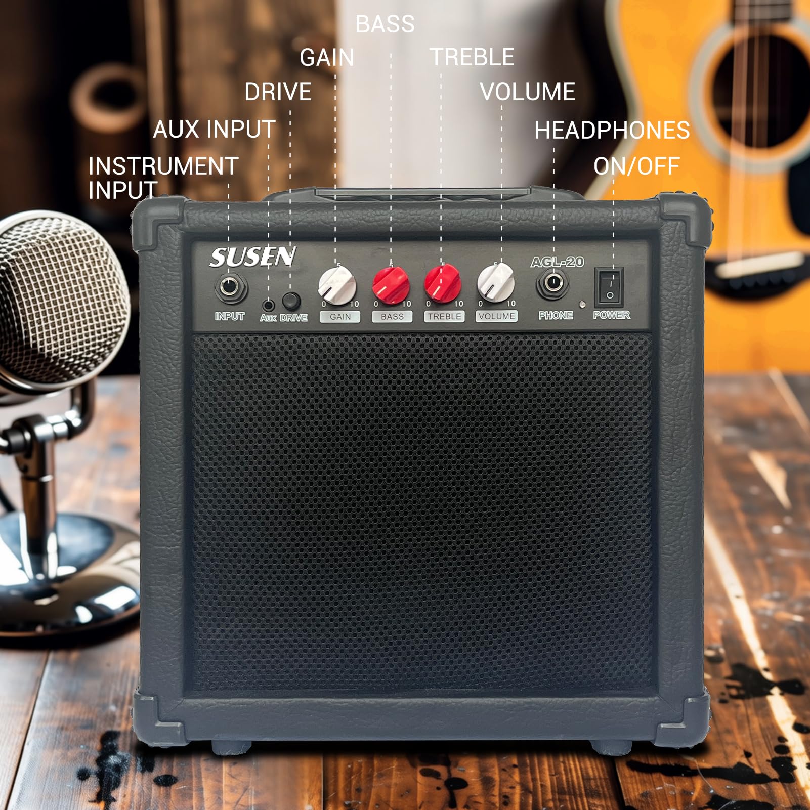 Gain, bass, treble, and volume controls: Our amplifier comes with easy-to-use gain, bass, and volume control knobs that allow you to adjust distortion levels and pitch according to your preferences, ensuring you get the desired sound when needed. Kind reminder: If your product produces very little or no sound during use, you can contact us at any time. Our after-sales customer service will provide 24-hour service and guide you to troubleshoot.