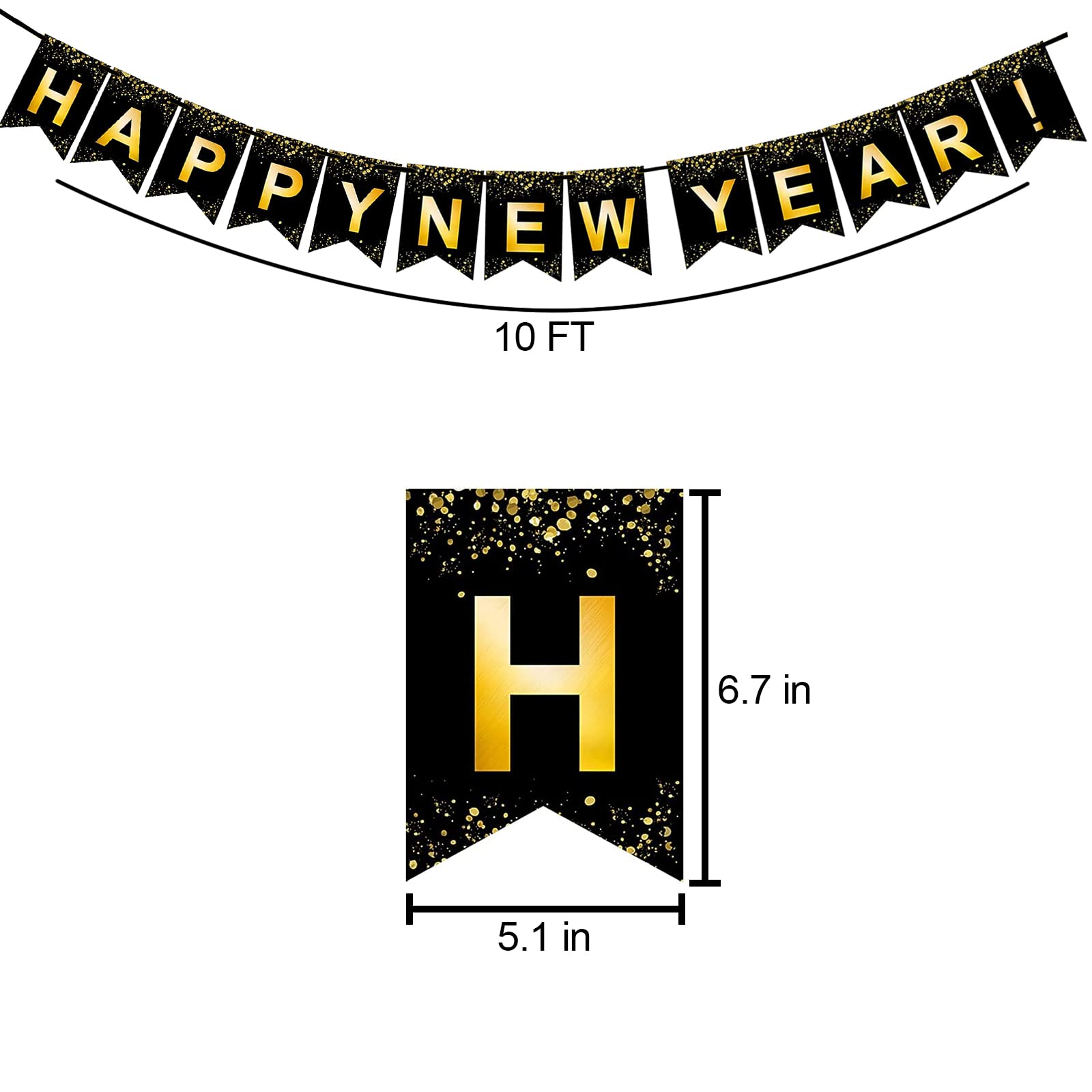 Size:HAPPY NEW YEAR IS 10FT;Each card is 5.1"x6.7";banner length enough for your new year party decorations.