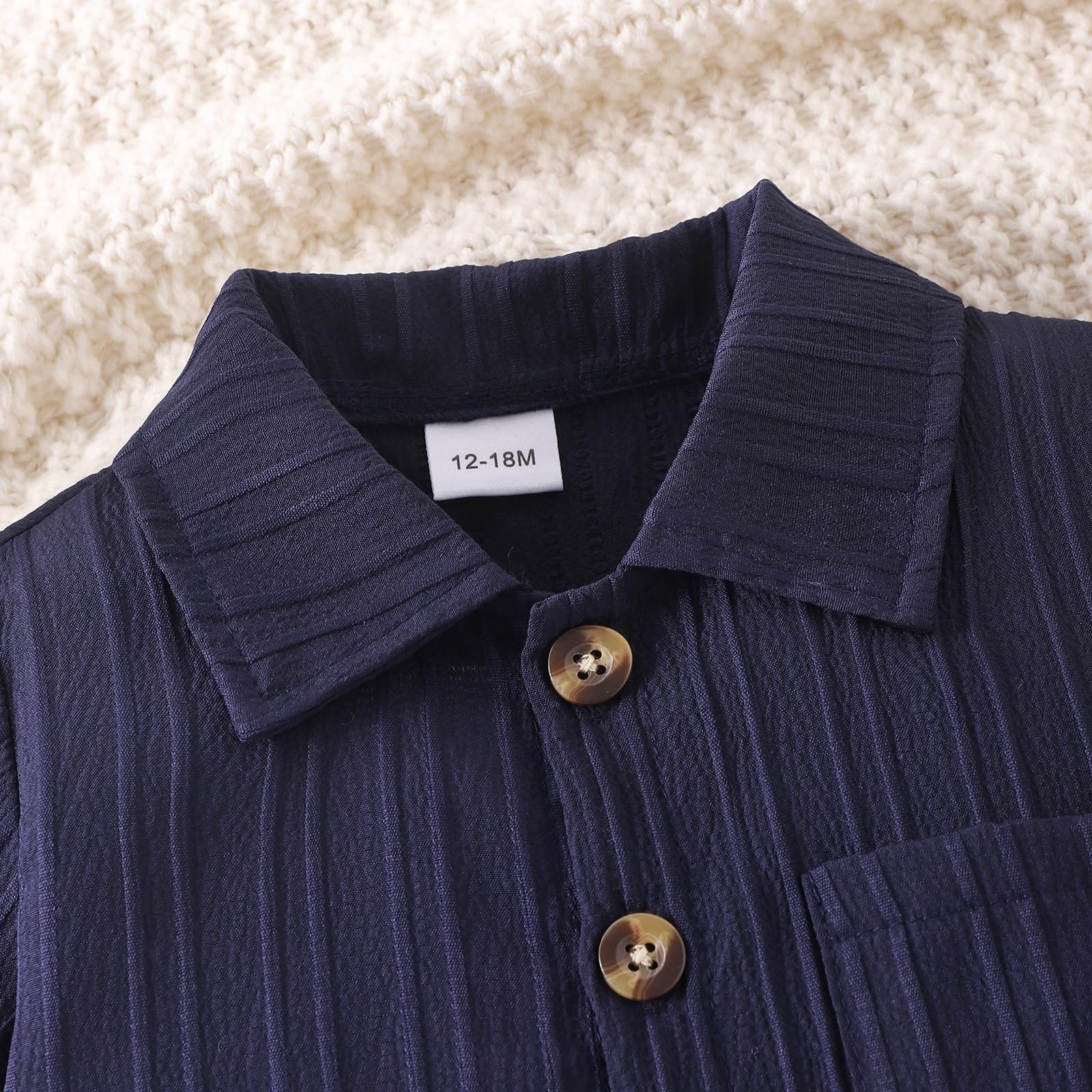 Stylish and practical design:Whether it's a vibrant Apricot or a cool green, these colors will keep your little one looking stylish and feeling fresh all season long.Featuring a stand-up collar design with fashionable buttons, our outfits exude a handsome charm. The vertical stripe texture adds a touch of sophistication, making the toddler clothes for boys stand out. Additionally, the elastic waistband with a decorative bow and convenient side pockets add both style and functionality.